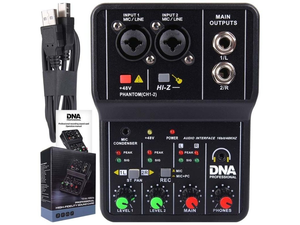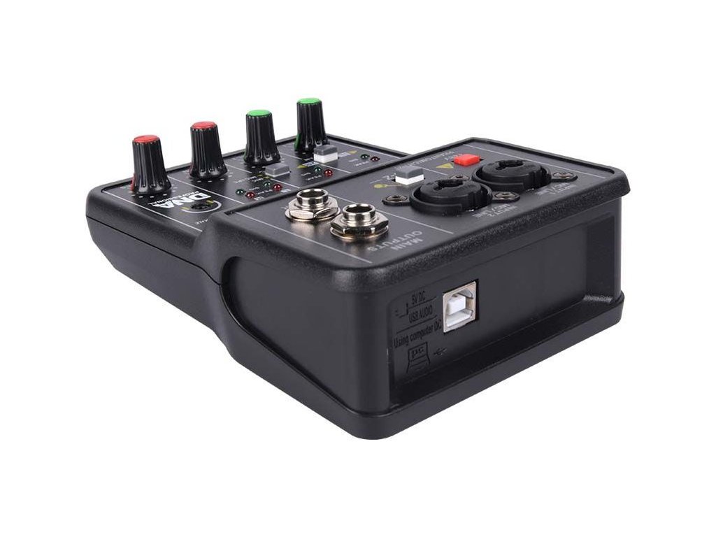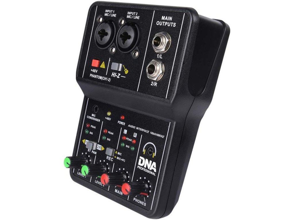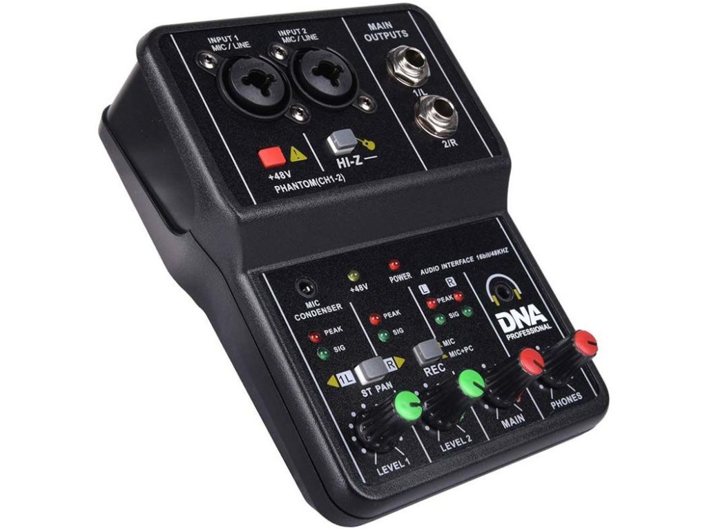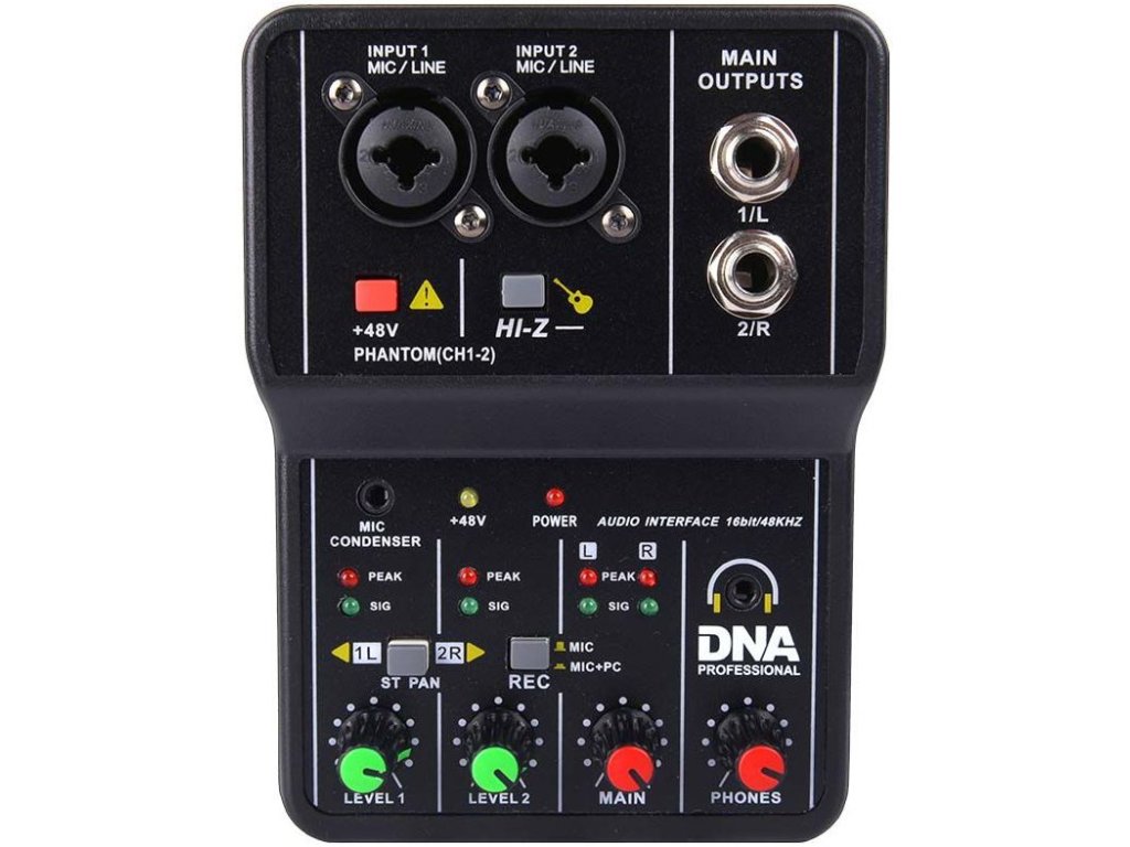 DNA MIX 2 to kompaktowy, analogowo-cyfrowy 2-kanałowy mikser audio z wbudowanym interfejsem audio USB, umożliwiającym łatwe podłączenie do komputera lub laptopa oraz różnych typów oprogramowania muzycznego, który można wykorzystać w różnego rodzaju systemach dźwiękowych. Idealny do domowego studia i nagrywania w domu, a także jako praktyczne wyposażenie dla wokalistów, gitarzystów, klawiszowców, artystów ulicznych i DJ-ów.