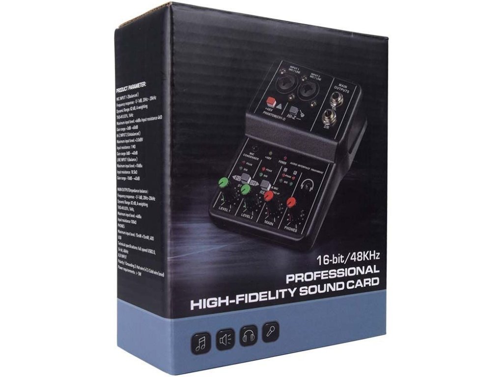 - Kompaktowy, przenośny mikser audio i zewnętrzny interfejs audio USB w jednym