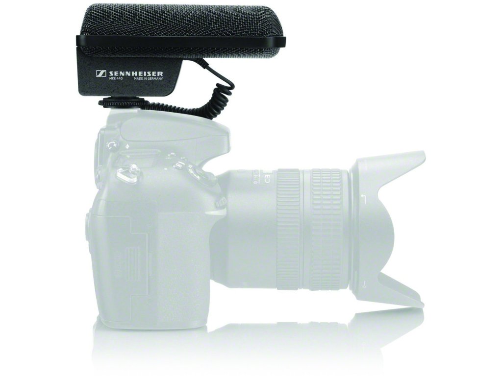 Mikrofon stereofoniczny/binauralny MKE 440 jest odpowiedni do aparatów cyfrowych (D-SLR) i kamer cyfrowych. Dźwięk nagrywany jest za pomocą dwóch kierunkowych kapsuł mikrofonowych umieszczonych w kształcie litery V (V-stereo). W przeciwieństwie do innych kamerowych mikrofonów stereo, rejestruje dźwięk nagrywanego obrazu bez zakłócających dźwięków bocznych i tylnych.