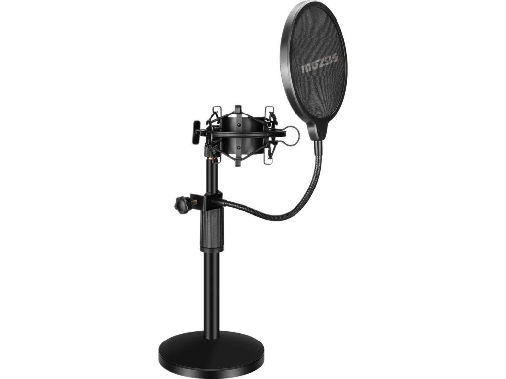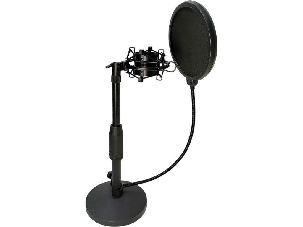 Stojak mikrofonowy biurkowy z solidną podstawą, amortyzowanym uchwytem i wysoce skutecznym filtrem Pop. Ten zestaw jest odpowiedni dla twórców podcastów, audycji, youtuberów i producentów muzycznych. Stojak posiada teleskopowy wysięgnik, a amortyzowany uchwyt pomieści mikrofony studyjne o średnicy korpusu od 43 do 47 mm. Filtr Pop zapewni eliminację zakłócających czynników dźwiękowych i spółgłosek wybuchowych. Ten zestaw z pewnością powinien znaleźć się na wyposażeniu każdej kreatywnej duszy, która chce rejestrować swoje pomysły w jak najlepszej jakości i wznieść swoją twórczość na wyższy poziom.