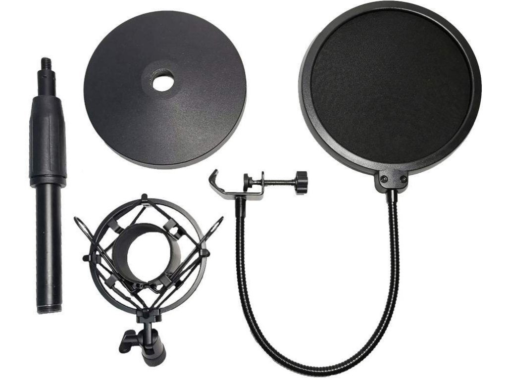 - Zawartość opakowania: Stojak biurkowy, amortyzowany uchwyt mikrofonowy, filtr pop