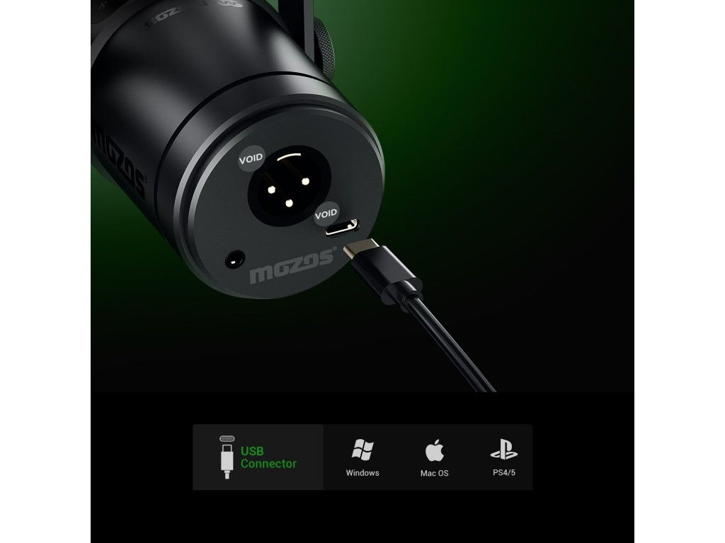 Elastyczne opcje połączeń zapewniają trzy interfejsy: XLR, USB-C i gniazdo 3,5 mm. Umożliwia to łatwe połączenie z komputerami (Windows/macOS), konsolami do gier lub interfejsami audio. Obsługa USB 1.1 / 2.0 / 3.0 oznacza funkcjonalność plug-and-play bez konieczności instalacji sterowników.