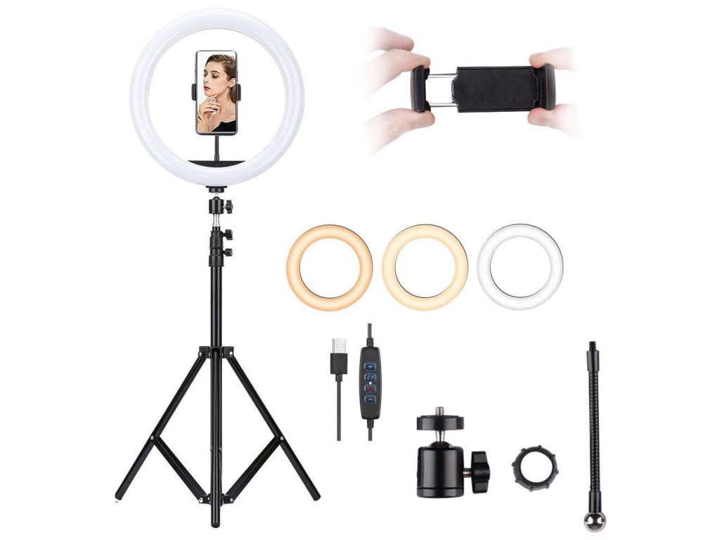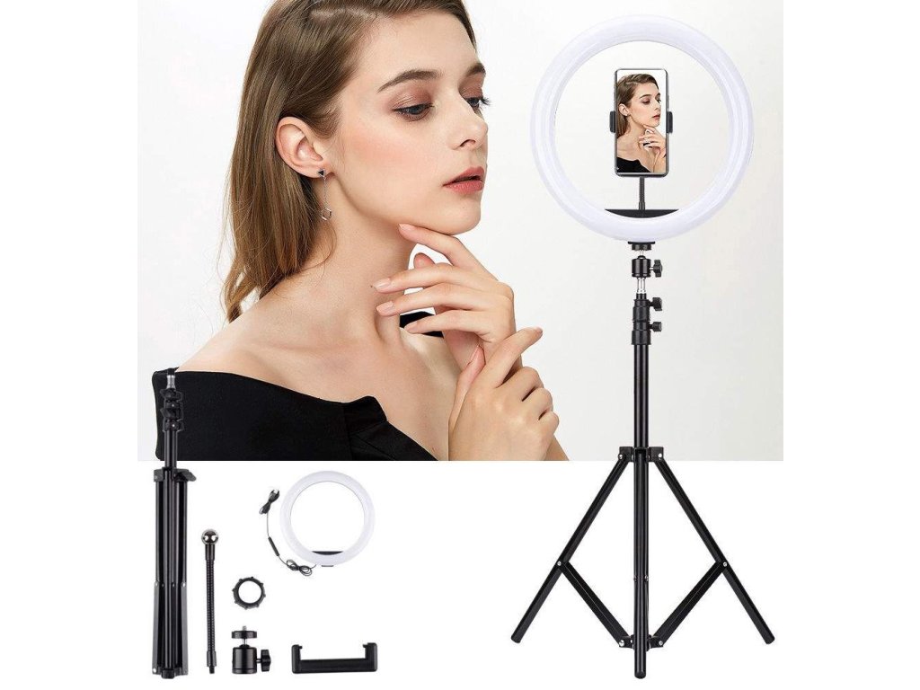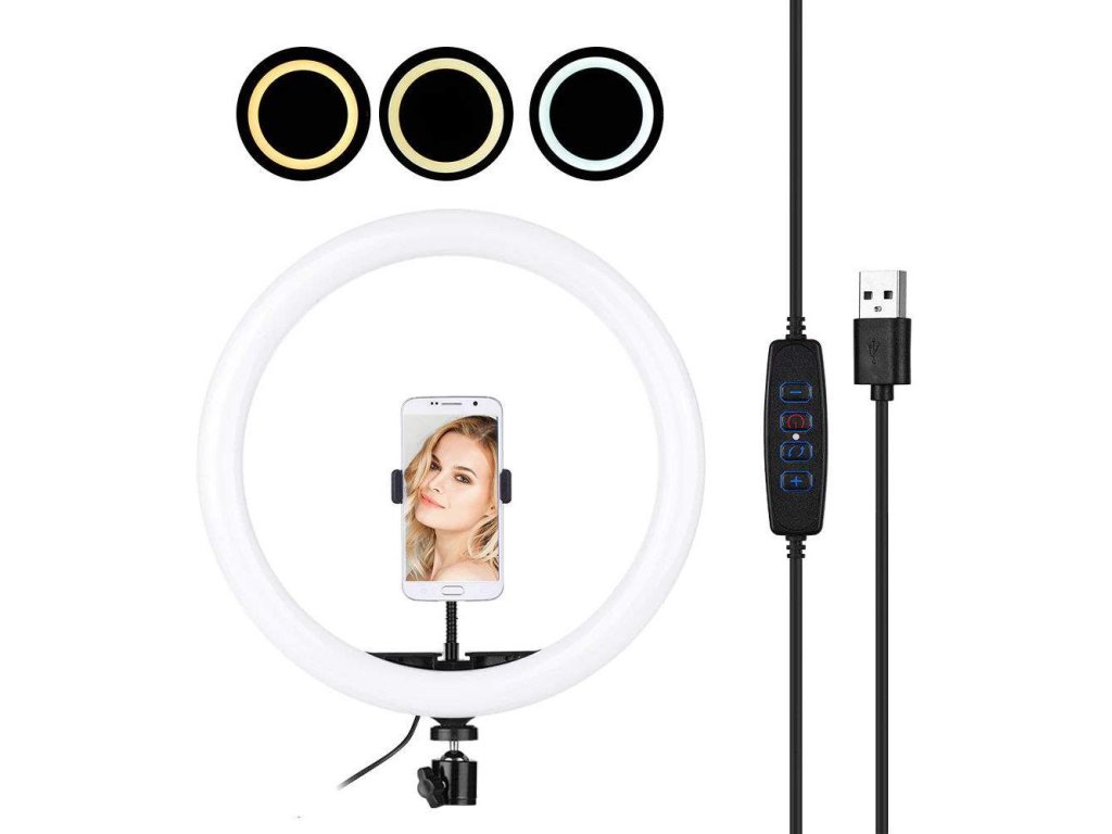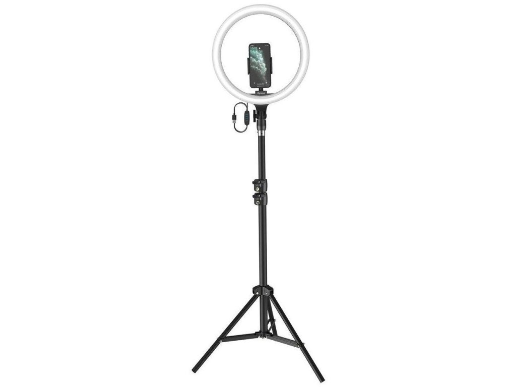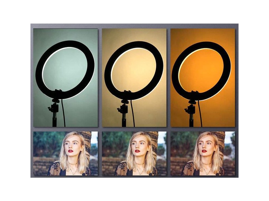 Uniwersalne światło LED w kształcie pierścienia o średnicy 30 cm z ciepłą, naturalną i zimną bielą, odpowiednie dla początkujących youtuberów, influencerów, fotografów i twórców podcastów. Światło zapewnia trzy odcienie bieli i nadaje Twojemu filmowi doskonale zbalansowany obraz, który całkowicie zmiażdży konkurencję. Zestaw zawiera również dwumetrowy kabel USB, uchwyt na smartfona i solidny statyw trójnożny z możliwością regulacji wysokości.