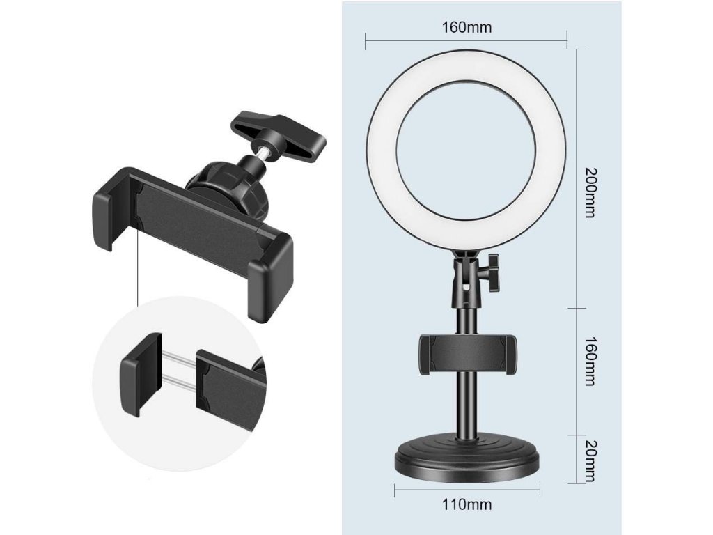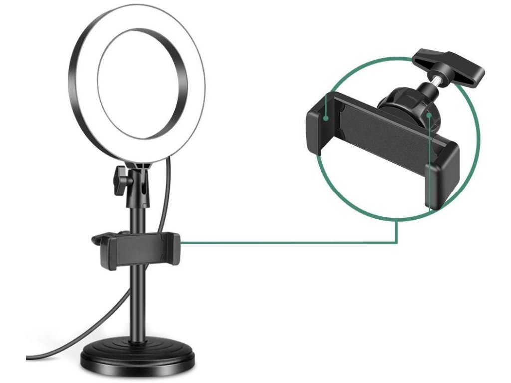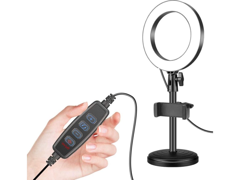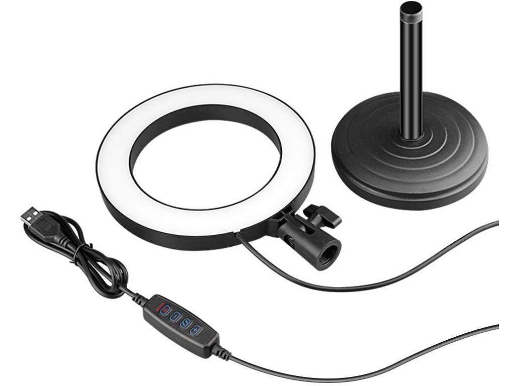 Uniwersalne światło LED w kształcie pierścienia o średnicy 16 cm z ciepłą i zimną bielą, odpowiednie dla początkujących youtuberów, influencerów, fotografów i twórców podcastów. Światło zapewnia trzy odcienie bieli i nadaje Twojemu filmowi doskonale zbalansowany obraz, który całkowicie zmiażdży konkurencję. Zestaw zawiera również dwumetrowy kabel USB z czteroprzyciskowym wyświetlaczem oraz solidny statyw stołowy z podstawą i uchwytem na smartfona.