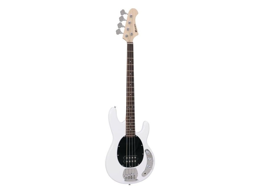 Gitara basowa typu MusicMan. Korpus lipowy, gryf klonowy, podstrunnica palisandrowa, 21 progów, menzura 867 mm, przetwornik 1 x HB, sterowanie 1 x Volume, 2 x Tone, mechanika otwarta. Kolor biały.