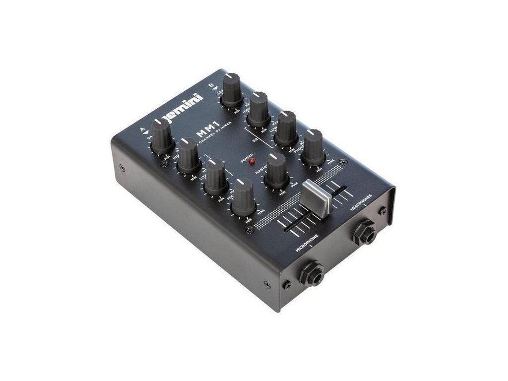 Gemini MM-1 to 2-kanałowy mikser DJ o "kieszonkowych" rozmiarach w solidnej metalowej obudowie, który zawiera wszystkie funkcje potrzebne do odtwarzania, miksowania i kierowania dźwiękiem - wzmocnienie kanału, 2-pasmowy korektor, dwa kanałowe wejścia i wyjścia stereo (główne i do nagrywania) wyposażone w złącza Cinch, wysokiej jakości crossfader do przenikania obu kanałów, złącza Jack 6,3 mm do podłączenia mikrofonu i słuchawek z dedykowaną regulacją głośności oraz potencjometr regulujący głośność głównego wyjścia.