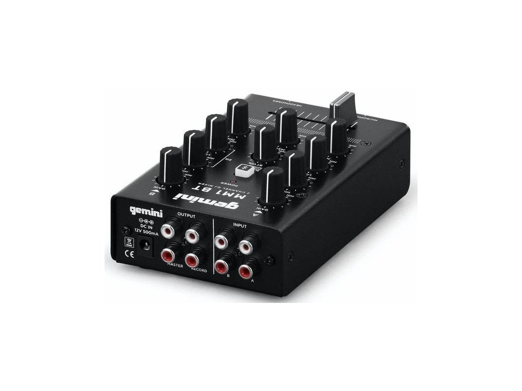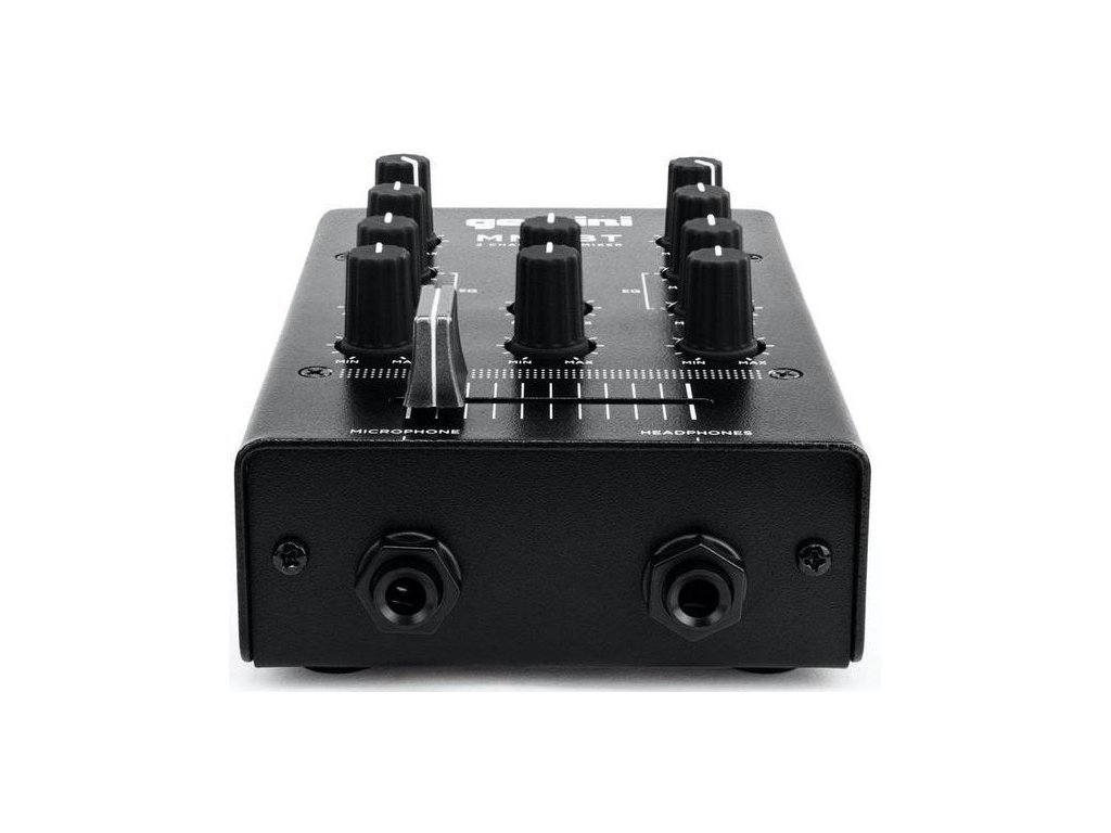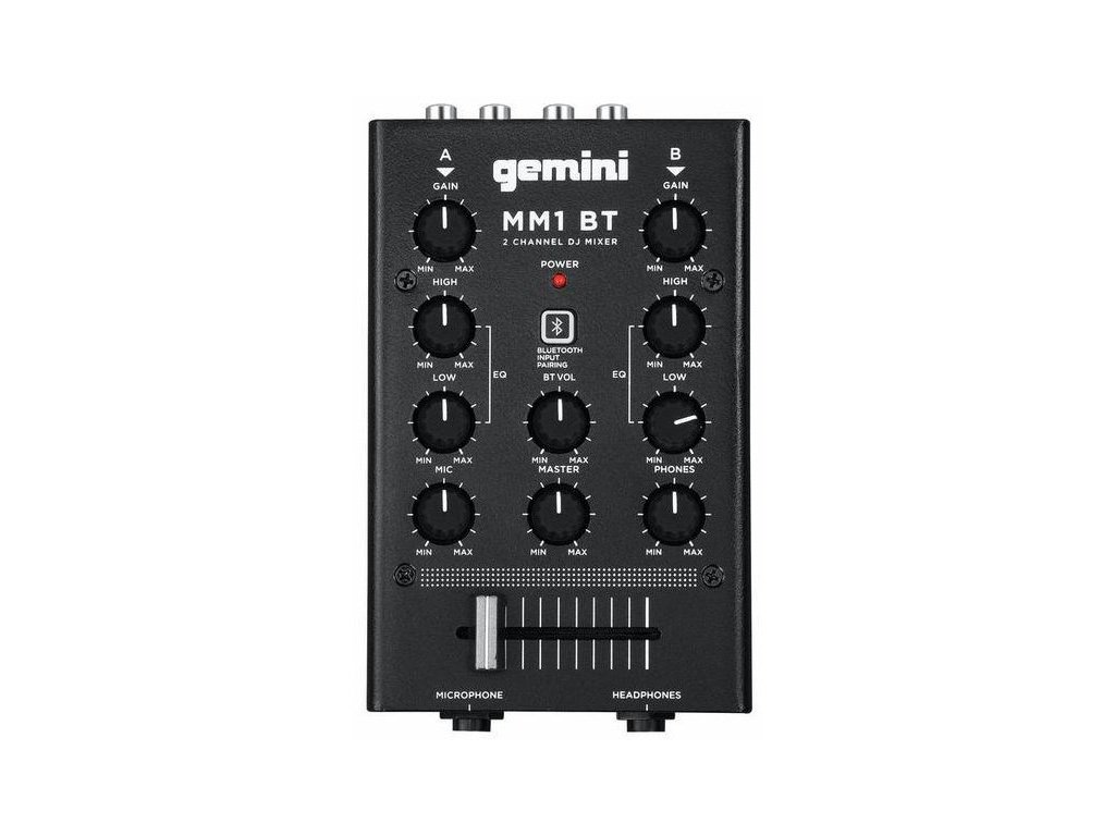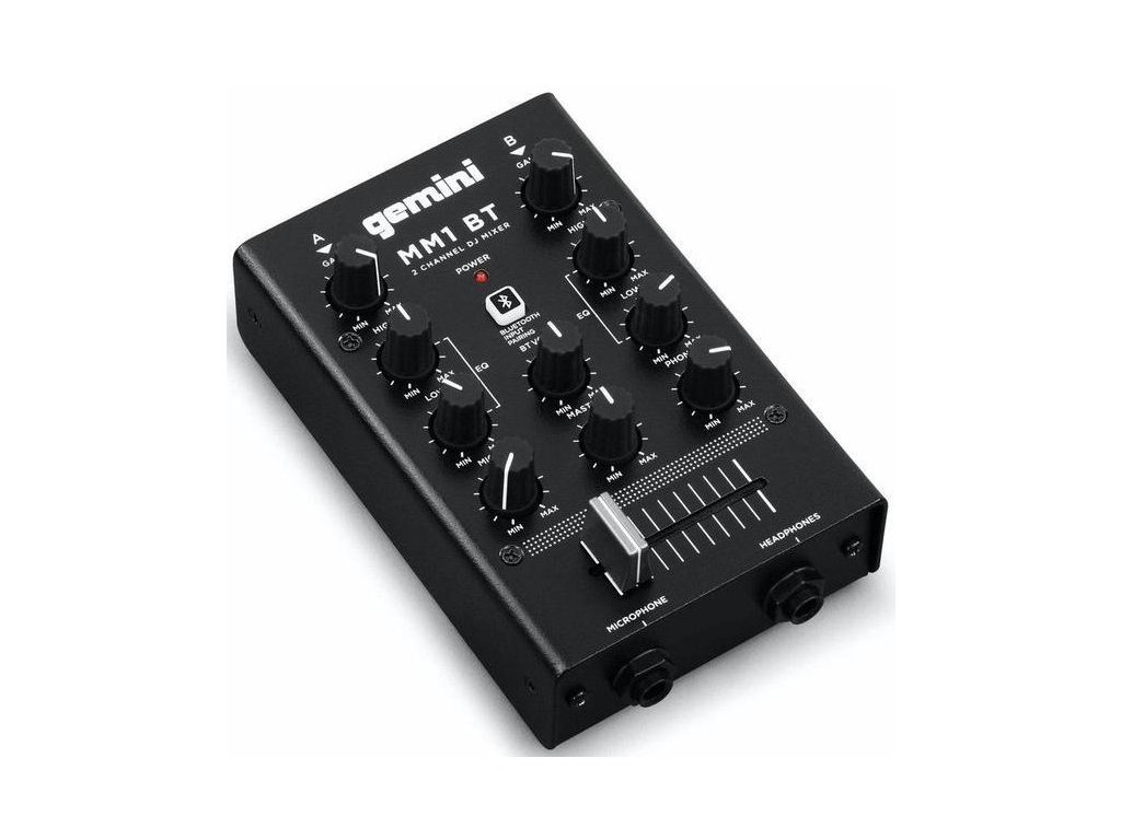 Gemini MM-1 to 2-kanałowy mikser DJ-ski o "kieszonkowych" rozmiarach z wbudowanym modułem Bluetooth w solidnej metalowej obudowie, który umożliwia bezprzewodowe przesyłanie muzyki ze smartfona lub tabletu bezpośrednio do miksera. Zawiera wszystkie funkcje potrzebne do odtwarzania, miksowania i kierowania dźwiękiem - regulację wzmocnienia kanału, 2-pasmowy korektor, dwa kanałowe wejścia i wyjścia stereo (główne i do nagrywania) wyposażone w złącza Cinch, wysokiej jakości crossfader do płynnego przechodzenia między oboma kanałami, złącza Jack 6,3 mm do podłączenia mikrofonu i słuchawek z dedykowaną regulacją głośności, potencjometr regulujący głośność głównego wyjścia oraz wyłącznik parowania Bluetooth.