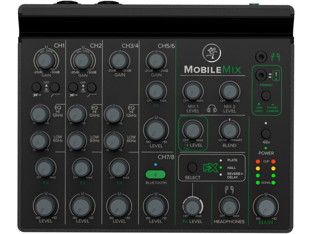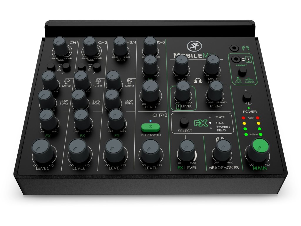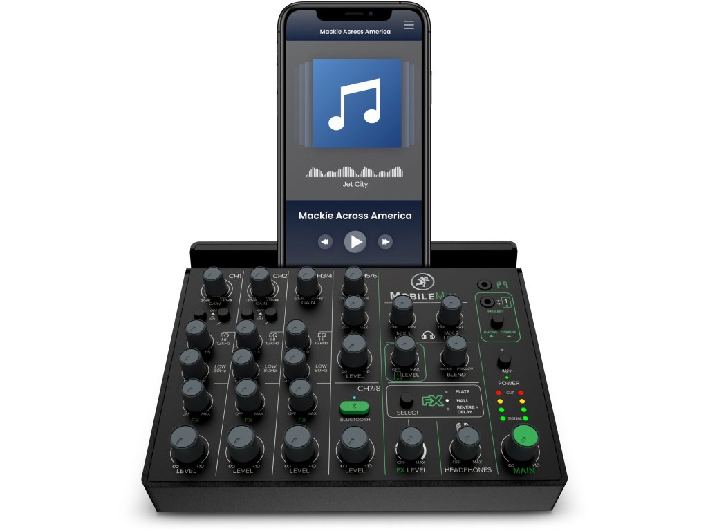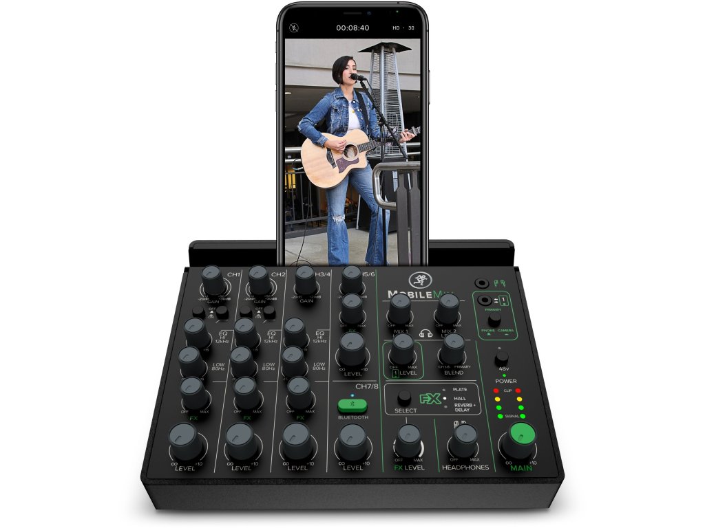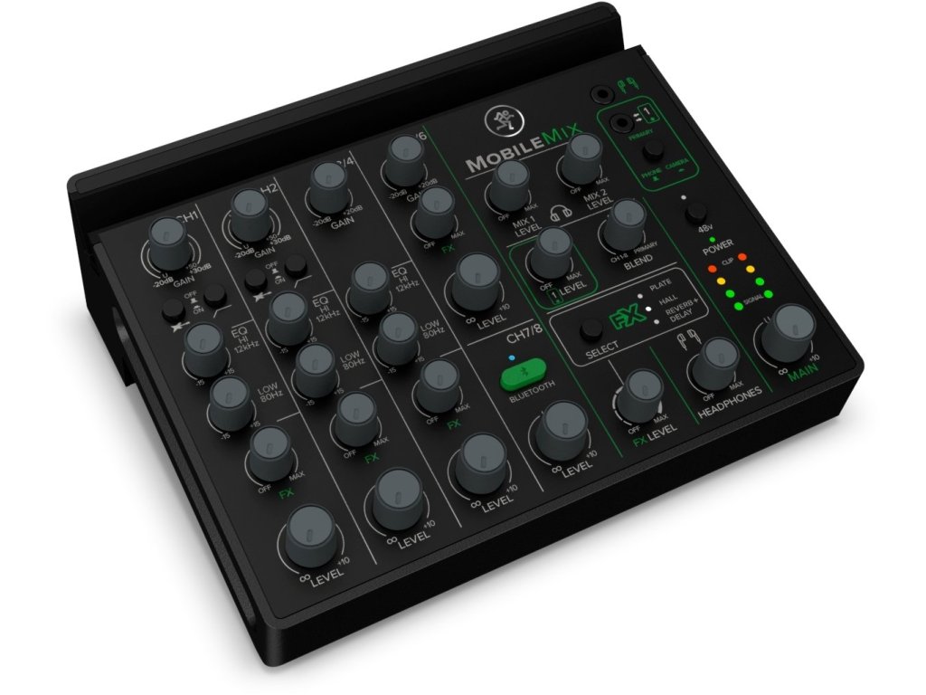 Mackie MobileMix to ośmiokanałowy mikser z zasilaniem przez USB, przeznaczony do produkcji audio / wideo, nagłośnienia na żywo i streamingu. Ten miniaturowy mikser z ośmioma kanałami, dwoma przedwzmacniaczami mikrofonowymi / instrumentalnymi, Bluetooth® z funkcją Mix Minus, stereofonicznymi wejściami liniowymi, equalizerem, efektami i innymi funkcjami to najprostszy sposób na uzyskanie profesjonalnego dźwięku w podróży. MobileMix działa na elastycznym zasilaniu z USB, co daje niezliczone możliwości cieszenia się dźwiękiem bez potrzeby dodatkowego zasilania. Wystarczy na przykład bateria USB, dla której MobileMix ma ukrytą przegródkę w dolnej części. Jest ona zaprojektowana tak, aby zmieściła się w niej większość zewnętrznych baterii, dzięki czemu MobileMix staje się prawdziwie bateryjnie zasilanym mikserem. MobileMix charakteryzuje się legendarną jakością wykonania i doskonałym dźwiękiem, dzięki którym firma Mackie jest znana na całym świecie. Dwa w pełni wyposażone kanały z przedwzmacniaczami mikrofonowymi z kombinowanymi złączami XLR / Jack 6,3 mm i zasilaniem fantomowym + 48V służą oprócz podłączenia mikrofonów alternatywnie również dla wysokoimpedancyjnych sygnałów Hi-Z (gitary elektryczne, gitary basowe itp.). Podłącz dwa smartfony lub aparaty fotograficzne jednocześnie za pomocą złączy Jack 3,5 mm TRRS i wysyłaj i odbieraj dźwięk z obu. Za pomocą stereofonicznego liniowego kanału wejściowego TRS podłącz zewnętrzne źródła, w tym urządzenia odtwarzające, miksery na żywo, notebooki, instrumenty na poziomie liniowym, takie jak klawisze i inne. Ponieważ mikser może wysyłać i odbierać dźwięk bezprzewodowo na dedykowanym kanale Bluetooth®, MobileMix umożliwia niektóre imponujące procedury produkcyjne - na przykład strumieniowanie muzyki z jednego urządzenia i jednoczesne nagrywanie do drugiego lub przechwytywanie obu rozmów telefonicznych jednocześnie za pomocą funkcji MixMinus, która eliminuje echo, co normalnie nie byłoby możliwe.