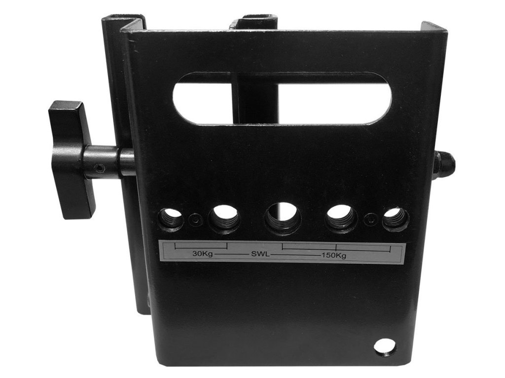 Ten specjalny zacisk jest przeznaczony do montażu na belkach namiotowych o szerokości od 50 do 100 mm i maksymalnym obciążeniu 150 kg, w zależności od punktów montażowych M10 / M12 / M14. Kolor czarny.