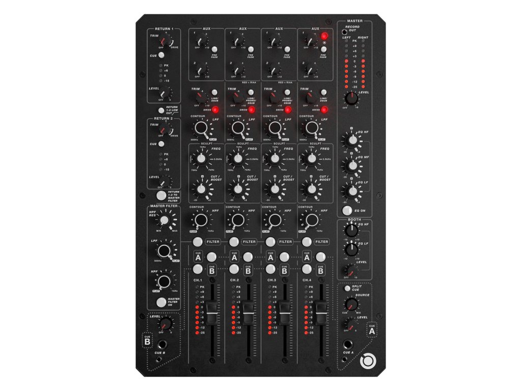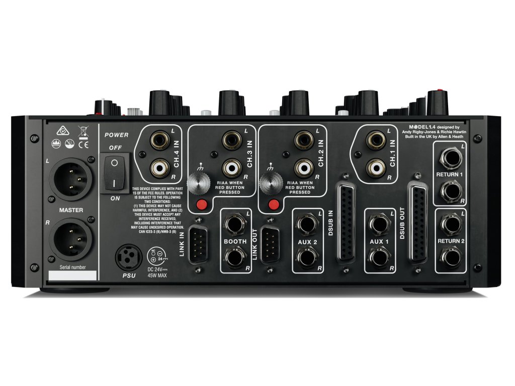 Kompaktowy MODEL 1.4 na pierwszy rzut oka oferuje bogatą łączność pomimo swoich rozmiarów, gdzie 4 w pełni wyposażone wejścia stereo w połączeniu z dwoma stereofonicznymi powrotami tworzą doskonały arsenał połączeń dla różnorodnych konfiguracji do cyfrowego i tradycyjnego DJ-ingu.