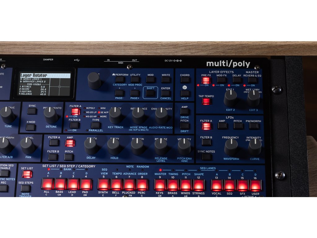 Multi/Poly oferuje przeprojektowane, niezwykle szczegółowe filtry i oscylatory oraz postępy w modelowaniu analogowym, które przenoszą tę technologię na nowy poziom. Każdy głos zawiera wirtualną kartę głosową, w której oscylatory, filtry, obwiednie, LFO i obwody portamento są modelowane tak, aby odzwierciedlały wariacje analogowych komponentów sprzętowych. Dzięki temu każdy głos może mieć nieco inny charakter, tworząc bogate i naturalnie ewoluujące barwy.