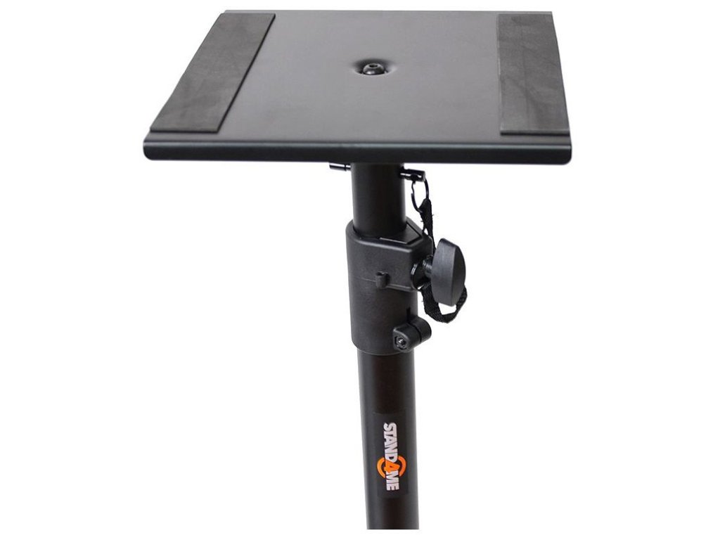 STAND4ME MON1 MKII to profesjonalne statywy pod studyjne monitory audio, które można również wykorzystać jako podstawki pod małe głośniki lub inne rodzaje urządzeń. Statywy pod monitory MON1 posiadają funkcję płynnej regulacji wysokości w zakresie od 66 cm do 116 cm oraz zabezpieczenie trzpieniowe przed przypadkowym zsunięciem się sztycy. Umożliwia to bezpieczne i optymalne ustawienie wysokości statywów, aby uzyskać najlepsze wrażenia słuchowe. Solidna podstawa w kształcie trójkąta równobocznego bez problemu utrzyma monitory o wadze do 15 kg. Górne podstawy statywów są kwadratowe. Posiadają specjalne paski z gumy piankowej, które zapobiegają zarysowaniu monitorów, tłumią wibracje rezonansowe i zapobiegają przesuwaniu się monitorów podczas pracy. Dodatkowo, statywy STAND4ME MON1 MKII posiadają gumowe nóżki zamienne z metalowymi kolcami przeznaczonymi do dywanów i wykładzin podłogowych. Dzięki nim możesz wypoziomować statyw tak, aby był on w pełni stabilny i bezpieczny.