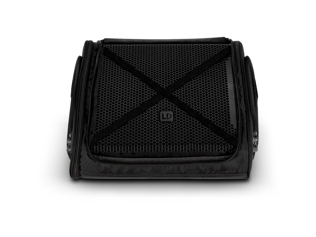 Duży przedni otwór ze zwijaną osłoną i boczne klapy umożliwiają pełne korzystanie z monitora z założonym pokrowcem ochronnym. Wycięcia na uchwyty, panel sterowania, złącza, kołnierz statywu głośnikowego i chłodnicę mają każdy własną klapkę. Te klapy zakrywające zamykają się na zamek błyskawiczny i można je utrzymywać otwarte za pomocą rzepów, aby monitor był optymalnie chroniony, a jednocześnie można go było używać.