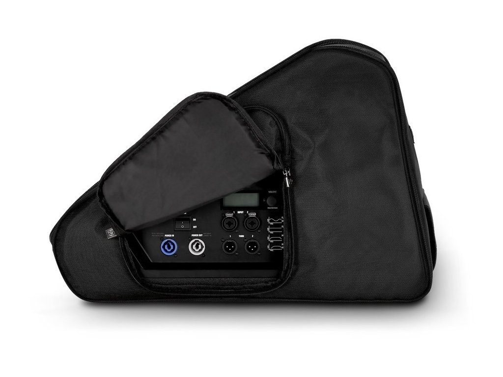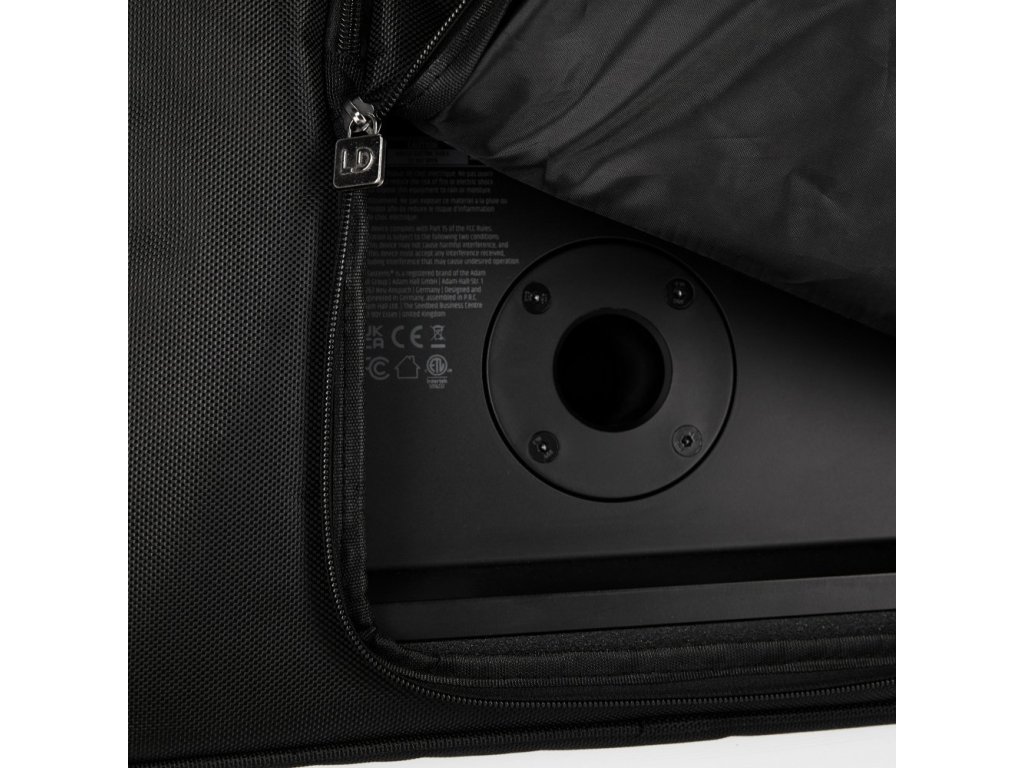 Duży przedni otwór ze zwijaną osłoną i boczne klapy umożliwiają pełne korzystanie z monitora z założonym pokrowcem ochronnym. Wycięcia na uchwyty, panel sterowania, złącza, kołnierz statywu głośnikowego i chłodnicę mają każdy własną klapkę. Te klapy zakrywające zamykają się na zamek błyskawiczny i można je utrzymywać otwarte za pomocą rzepów, aby monitor był optymalnie chroniony, a jednocześnie można go było używać.