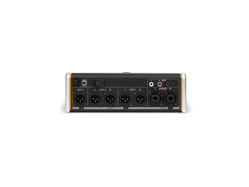 Zaawansowane opcje monitoringu: Dwa stereofoniczne wyjścia i jedno monofoniczne wyjście zapewniają maksymalną elastyczność podczas konfiguracji głośników. Możesz bez problemu podłączyć główne monitory, systemy nearfield lub subwoofer. Duże, precyzyjne analogowe pokrętło głośności zapewnia płynną i dokładną regulację poziomu wyjściowego.