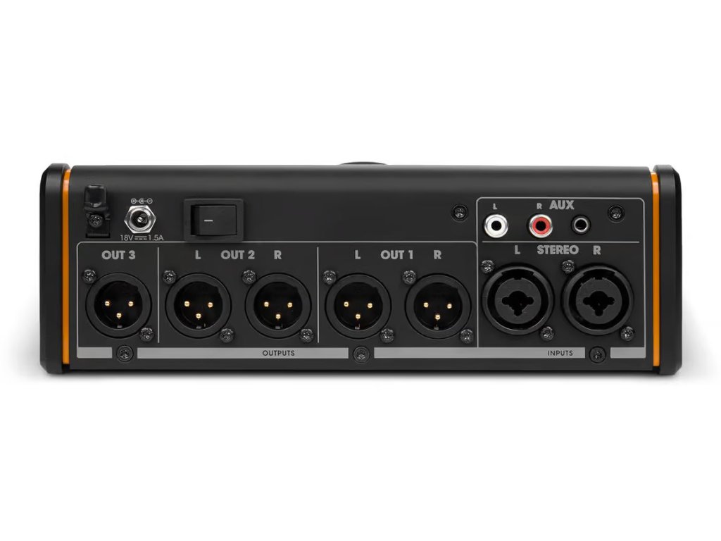 Więcej możliwości monitorowania: Dwa wyjścia stereo i jedno wyjście mono umożliwiają elastyczne przełączanie między głównymi monitorami, systemami nearfield lub subwooferem. Duże analogowe pokrętło głośności zapewnia precyzyjną regulację poziomu wyjściowego.