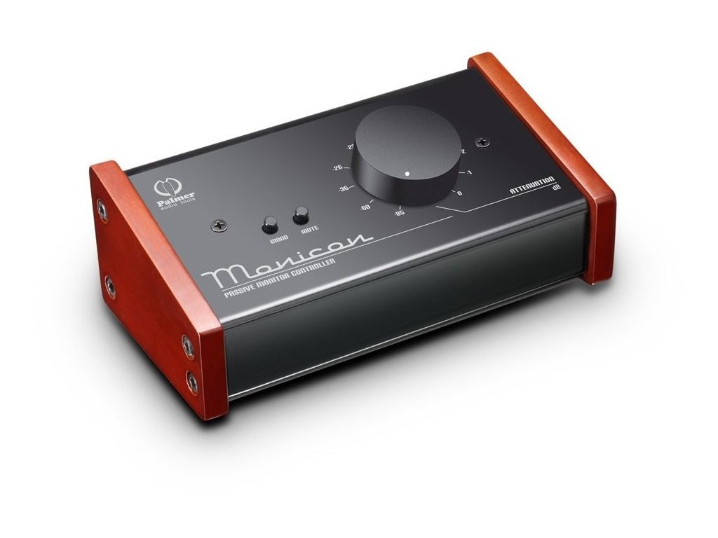 Z Palmer Monicon® masz zawsze kontrolę nad głośnością odsłuchu. Pasywny mini mikser z wielkoformatowym kontrolerem jest podłączony między wyjście stereo notebooka, PC lub interfejsu a aktywny monitor, umożliwiając wygodną i precyzyjną regulację poziomu monitorów ze stanowiska pracy. Pasywny obwód z zaledwie kilkoma elementami nie zmienia w żaden sposób dźwięku. Przyciski Mute i Mono umożliwiają wyciszenie wyjść i połączenie stereofonicznego sygnału wyjściowego w sumę mono.