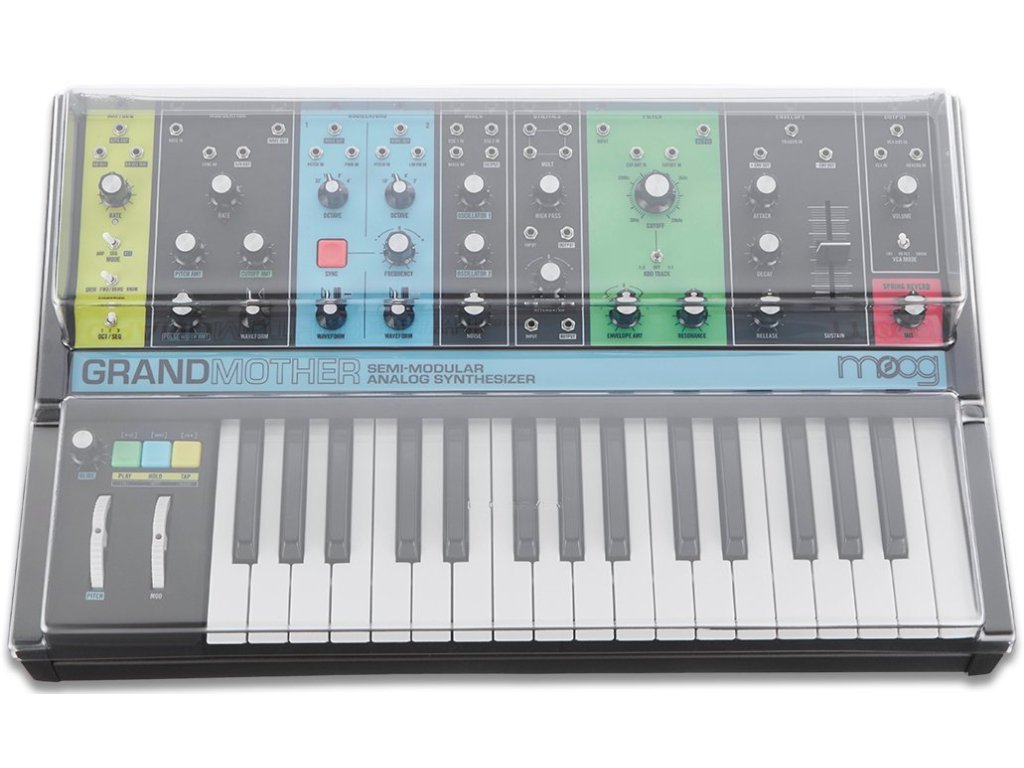 Pokrowiec wykonany jest z wysokiej jakości przezroczystego tworzywa sztucznego, w pełni kompatybilny z syntezatorem analogowym Moog Grandmother.
