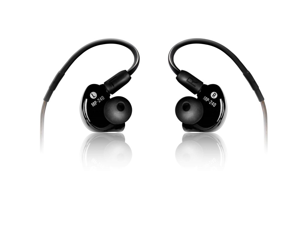Mackie MP-240 są wyposażone w przetwornik basowy i specjalny hybrydowy przetwornik marki Knowles, charakteryzujący się niezwykle transparentnym odwzorowaniem średnich i wysokich częstotliwości. Słuchawki są w swojej kategorii bezkonkurencyjnym rozwiązaniem do zastosowań na żywo i w studio. Przesyłanie sygnału zapewnia wysokiej jakości ekranowany kabel w oplocie, wyposażony w odłączane złącza MMCX i regulowany zacisk dla jak najwygodniejszego noszenia. W zestawie znajdują się trzy rodzaje zapasowych wkładek dousznych w różnych rozmiarach dla maksymalnej izolacji od hałasu otoczenia, redukcja na jack 6,3 mm oraz solidny futerał do bezpiecznego transportu.