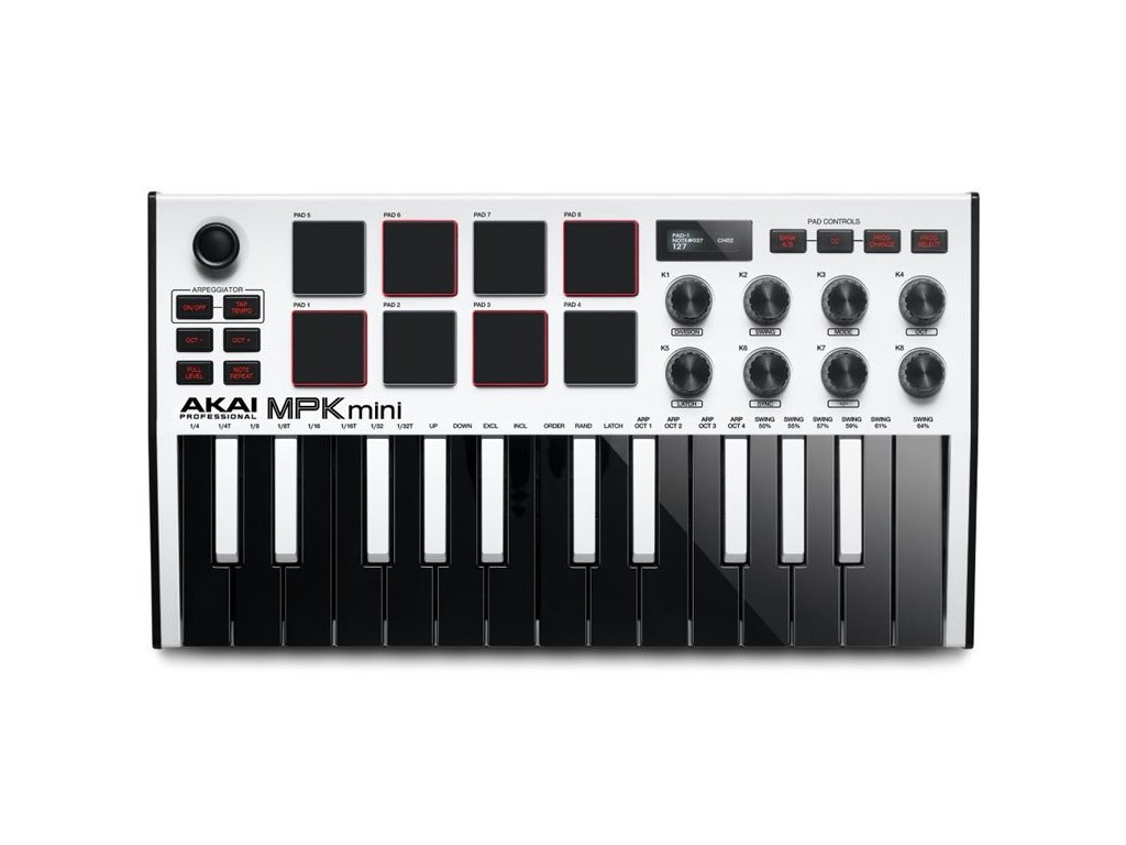 Trzecia generacja najlepiej sprzedającego się keyboardu MIDI na świecie! MPK mini MK3 oferuje zupełnie nową klawiaturę, prawdziwe pady AKAI PRO MPC (używane w najnowszych samodzielnych MPC), 8 pokręteł z nieograniczonym obrotem, wyświetlacz OLED wyświetlający podstawowe informacje, a także kompletne wyposażenie SW, w tym MPC Beats. Kolor biały.
