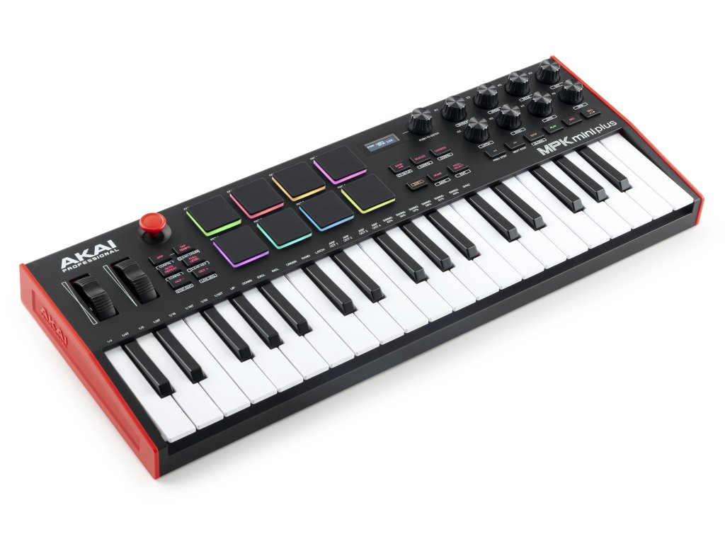 MPK Mini Plus to pierwszy keyboard z serii MPK z 37 klawiszami. Wersja PLUS oferuje dodatkowo 64-krokowy sekwencer, nowe przyciski transportu, łączność CV/Gate/MIDI, kolorowe podświetlane pady MPC, kółka modulacji i pitch bend oraz wiele więcej. W zestawie znajduje się duży pakiet SW, w tym MPC Beats.