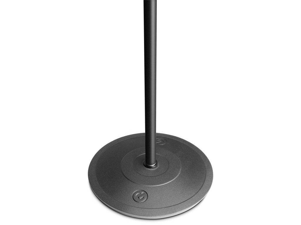 GMS 231 HB to wysokiej jakości statyw mikrofonowy z grubymi ściankami, czarną powłoką proszkową i wysokością 175 cm. Wyjątkowo stabilna okrągła podstawa wykonana jest z ciężkiego żeliwa, a gumowy pierścień na spodzie zapewnia izolację akustyczną i ochronę powierzchni.