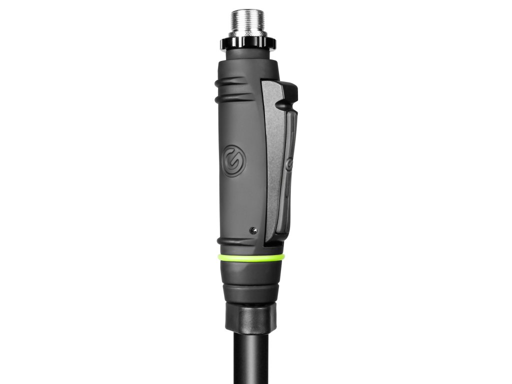GMS 231 HB jest wyposażony w nową i wyjątkowo wygodną funkcję regulacji wysokości za pomocą jednego antypoślizgowego, ergonomicznego uchwytu, dzięki czemu statyw jest zawsze łatwy w użyciu.