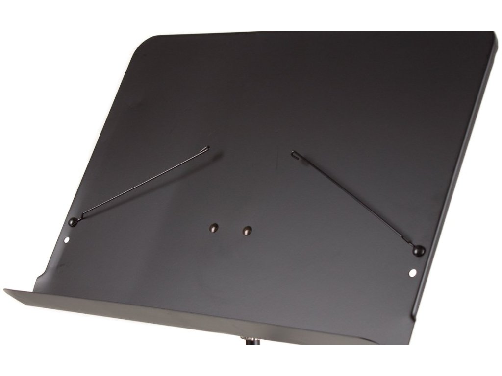 Profesjonalny, solidny, aluminiowy statyw na nuty. Punkty styczne są odporne na zarysowania i wyposażone w gumowe podkładki antypoślizgowe. Wymiary pulpitu: 495 x 340 mm.