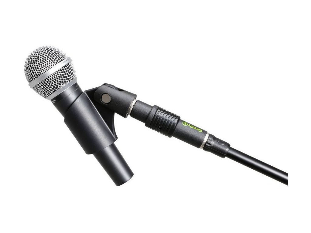 MS QC 1 TB z gwintem zewnętrznym 3/8" łączy się z szybkozłączką Gravity. Dzięki rowkowi i kulkowemu mechanizmowi blokującemu wymiana klipsów mikrofonowych, mikrofonów i ramion jest łatwa. Koronka szybkozłączki zawiera adapter 5/8" zapewniający kompatybilność ze wszystkimi klipsami mikrofonowymi i ramionami ramion.