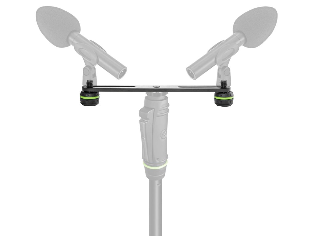 Uniwersalny uchwyt na dwa mikrofony wykonany jest z wytrzymałego aluminium, odpowiedni do nagrywania stereo instrumentów akustycznych, elektrycznych lub perkusyjnych. Dzięki szynom i regulowanym gwintom można ustawić wszystkie możliwe kierunki i warianty nagrywania stereo (ORTF, DIN, XY i AB). Listwę można łatwo przymocować do statywu mikrofonowego z gwintem 3/8". Poziomy rozstaw między mikrofonami wynosi 60 - 170 mm.