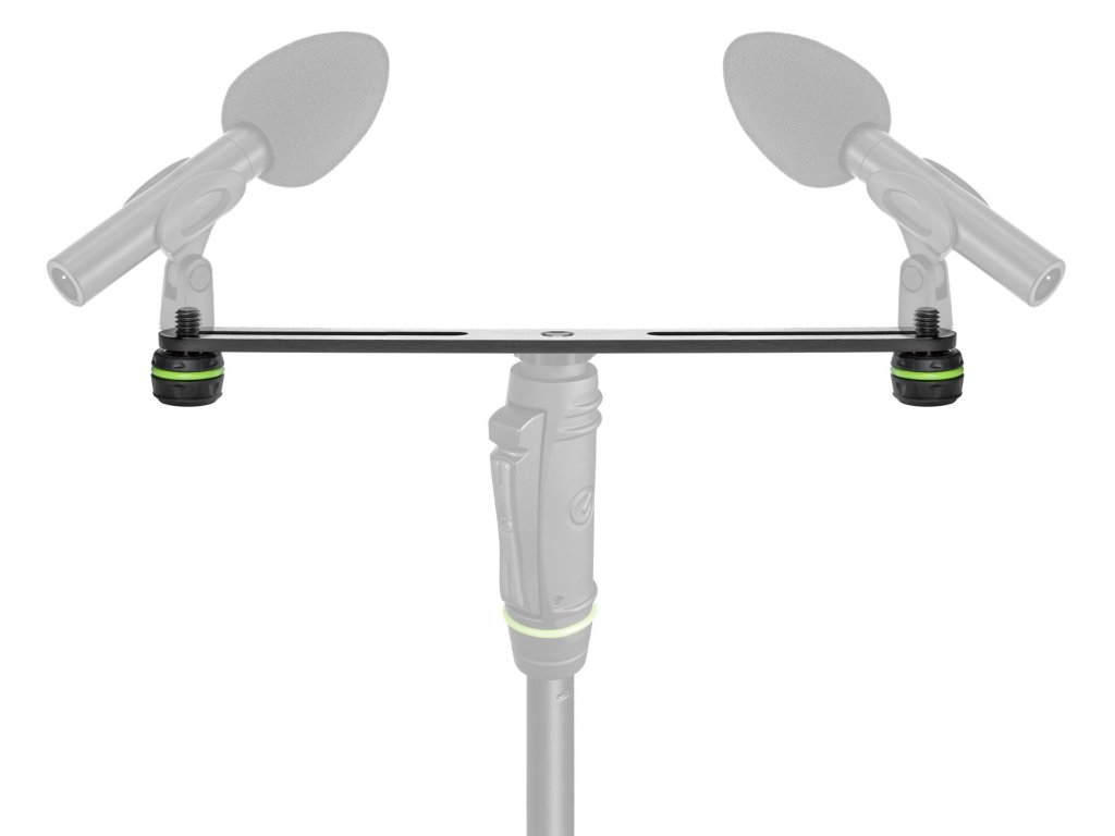Z pomocą Gravity Stereo Bar 02 można zamontować dwa mikrofony na statywie z gwintem 3/8 "dla łatwego ustawiania pozycji. Wykonany jest z solidnego aluminium i posiada dwa ruchome uchwyty mikrofonowe z gwintem 3/8", umożliwiające płynną regulację odległości od 60 do 220 mm.