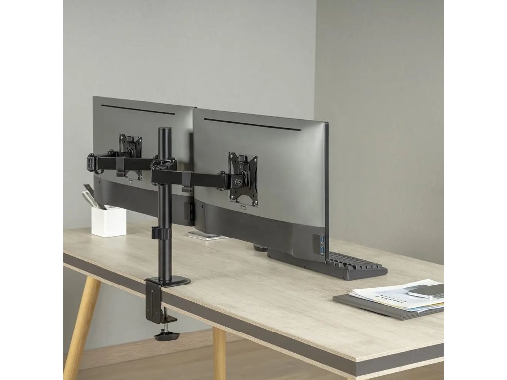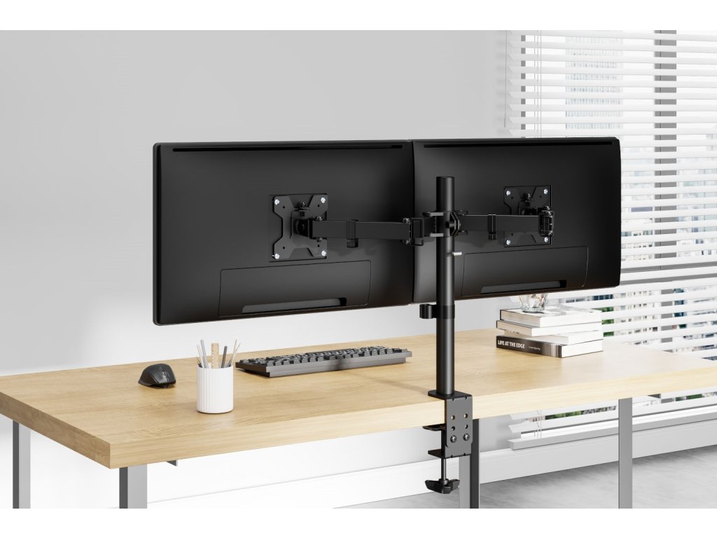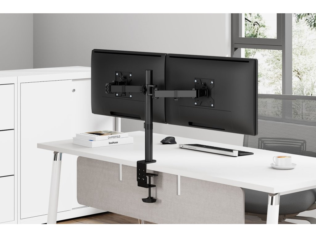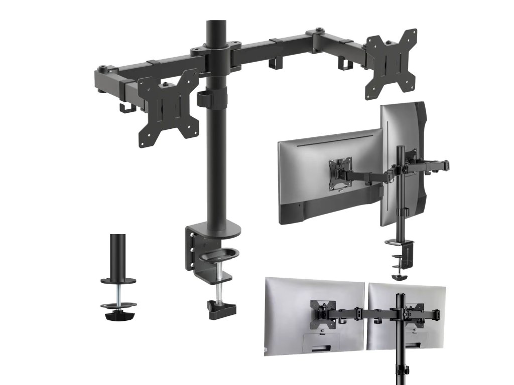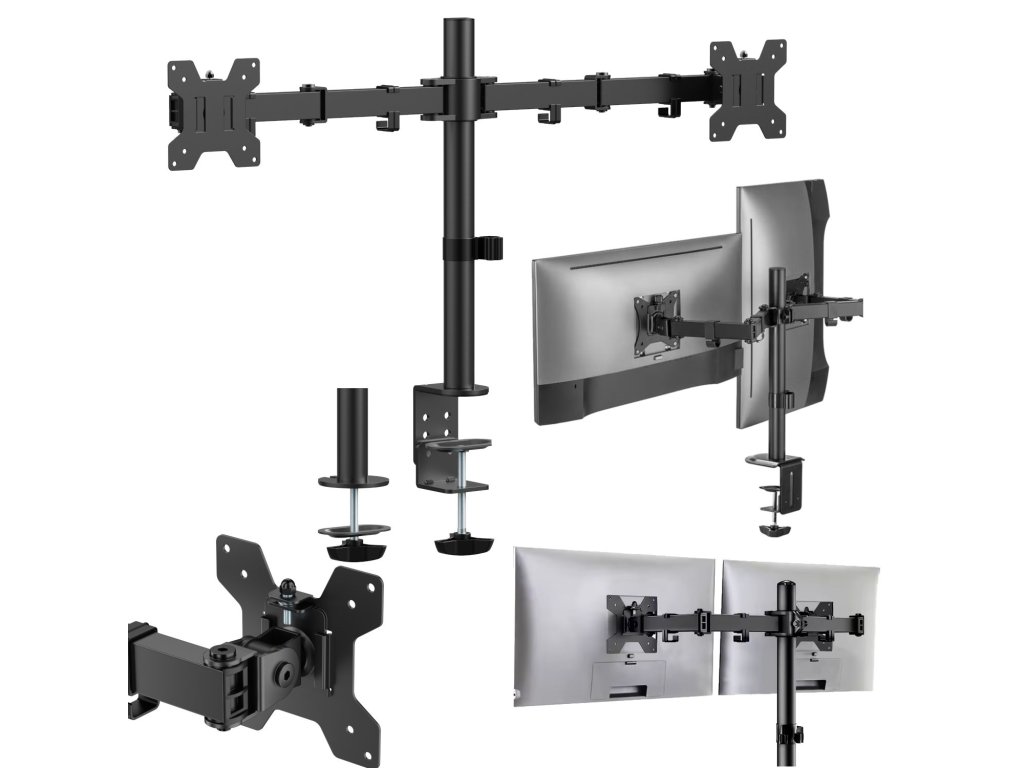 Dla tych, którzy potrzebują zorganizować przestrzeń roboczą lub zmagają się z brakiem miejsca podczas pracy z dwoma monitorami LCD, ten profesjonalny podwójny uchwyt biurkowy jest idealnym rozwiązaniem.