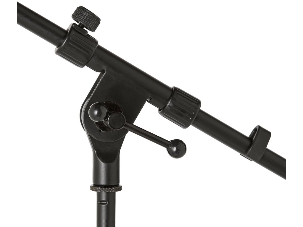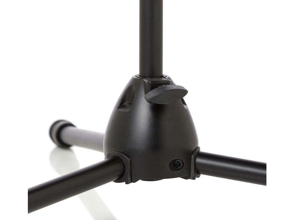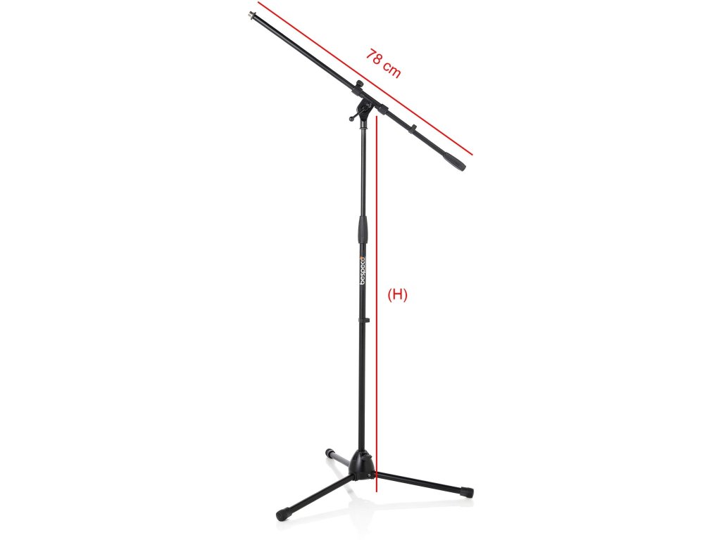 Profesjonalny statyw mikrofonowy ze stałym ramieniem (78 cm), ze środkowym przegubem, metalową podstawą, ergonomicznym sprzęgłem i przeciwwagą z obciążonego nylonu. Nogi są wyposażone w antywibracyjne gumowe podkładki. Statyw dzięki swojej stabilności wyjątkowo nadaje się do każdej sytuacji.