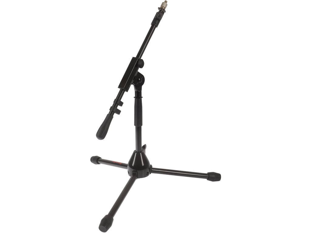 Niski statyw mikrofonowy z ramieniem, stabilną podstawą i łatwo regulowaną wysokością. Wykonany jest z metalu, a podstawa ze stopu cynku, co gwarantuje statywowi maksymalną trwałość i niską wagę. Długość ramienia jest regulowana w zakresie 45-80 cm. W zestawie znajduje się również adapter gwintowy 3/8“-5/8“ oraz pokrowiec transportowy.