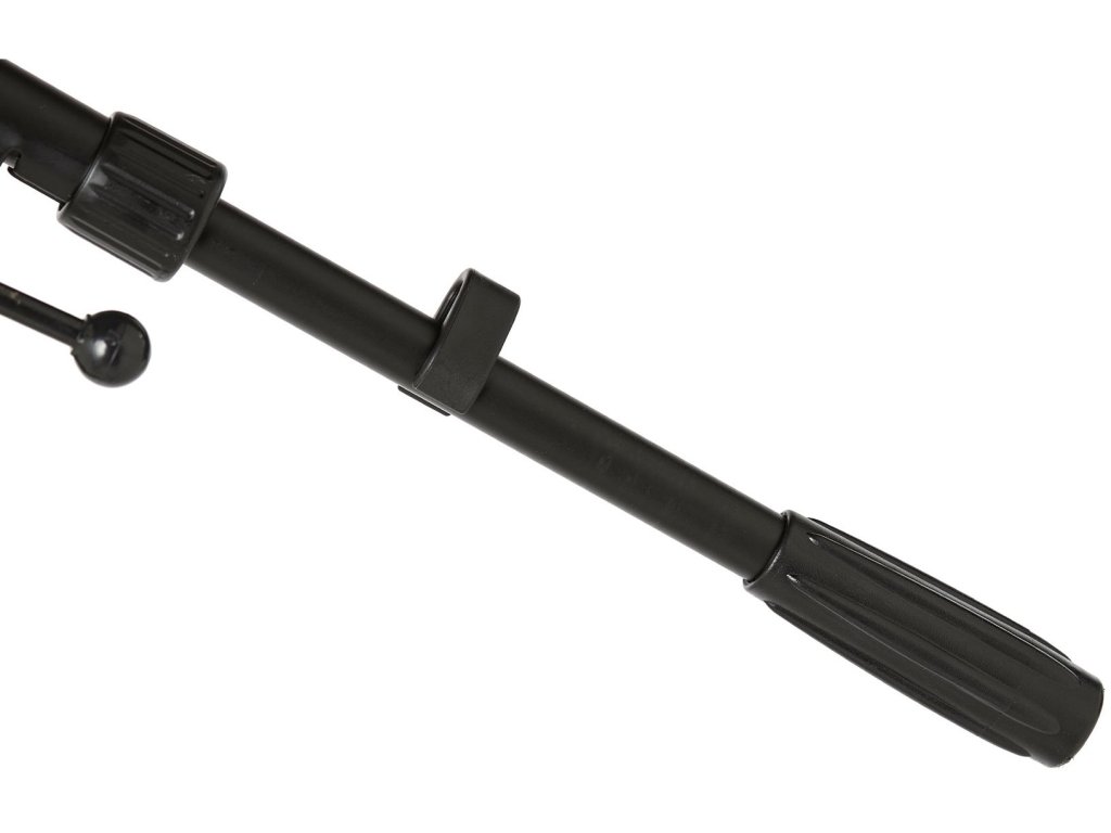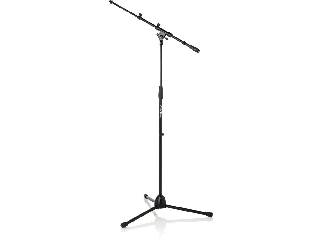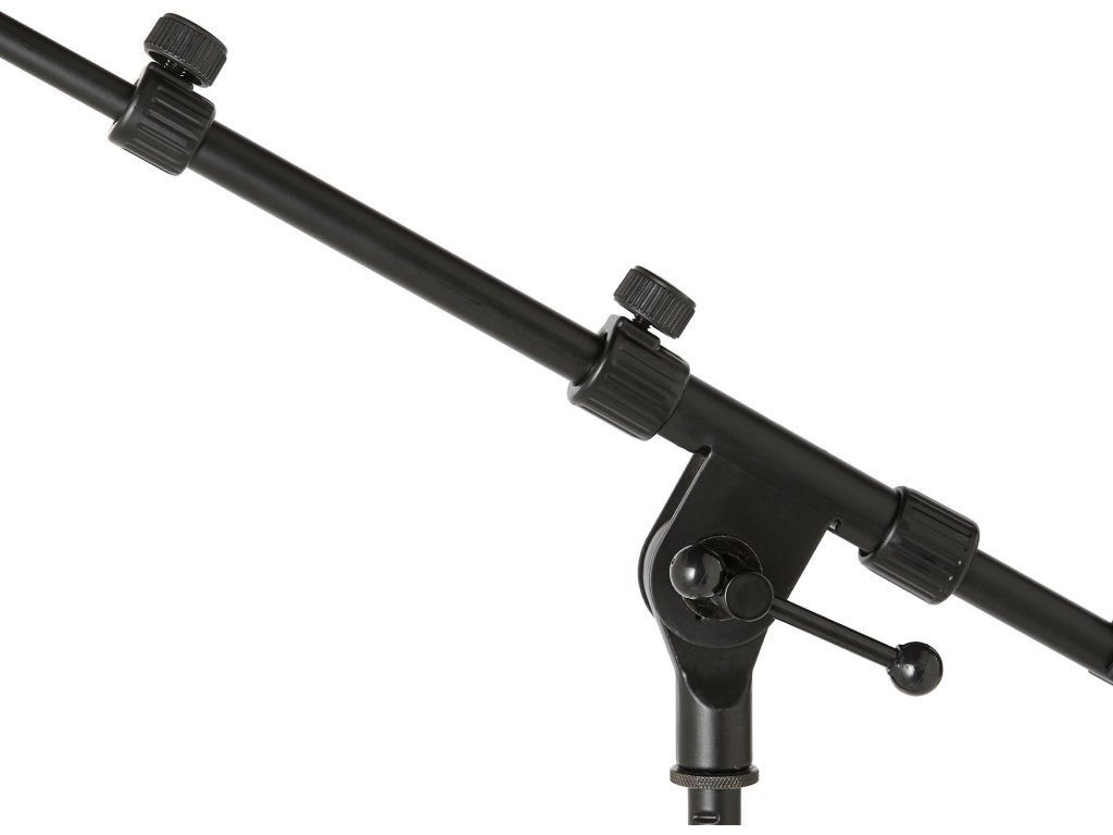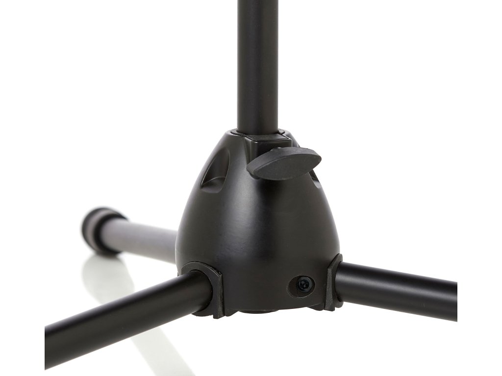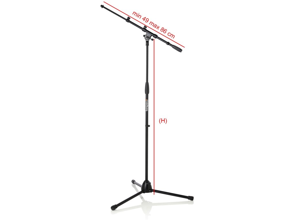 Profesjonalny statyw mikrofonowy z teleskopowym ramieniem (zakres 49 - 86 cm), ze środkowym przegubem, metalową podstawą, ergonomicznym sprzęgłem i przeciwwagą z obciążonego nylonu. Nogi są wyposażone w antywibracyjne gumowe podkładki. Statyw dzięki swojej stabilności wyjątkowo nadaje się do każdej sytuacji.