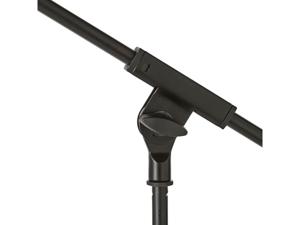 Profesjonalny statyw mikrofonowy ze stałym ramieniem (78 cm), ze środkowym przegubem, metalową podstawą, ergonomicznym sprzęgłem i przeciwwagą z obciążonego nylonu. Nogi są wyposażone w antywibracyjne gumowe podkładki. Dzięki swojej wyjątkowej stabilności statyw nadaje się do każdej sytuacji.