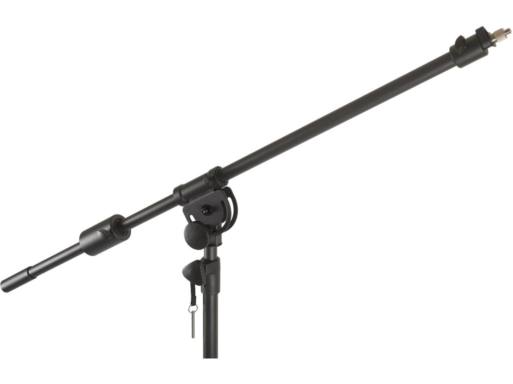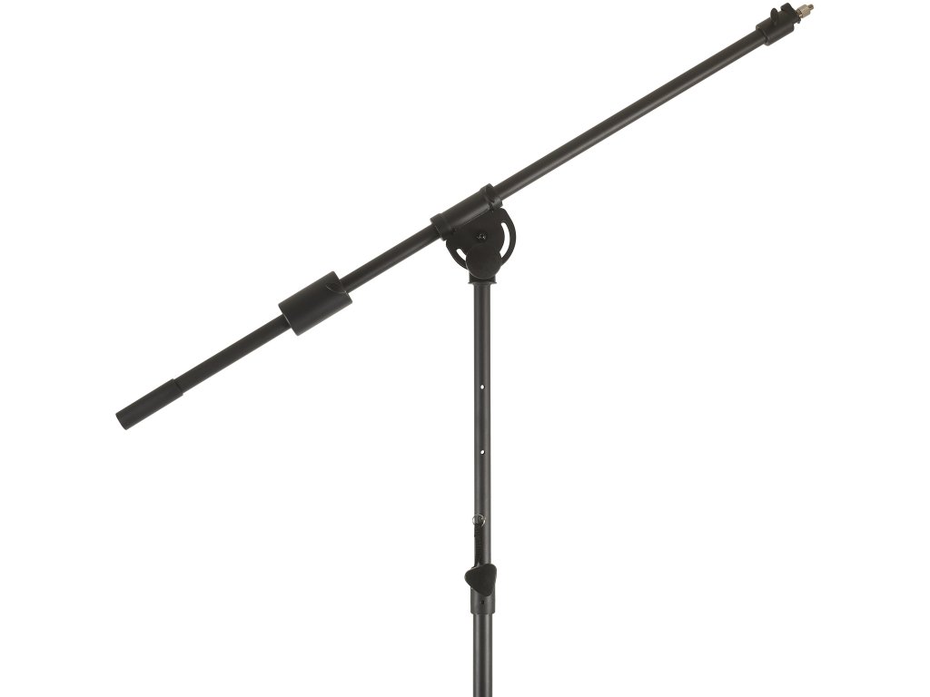 Ten wyjątkowo wysoki i solidny statyw mikrofonowy zapewnia maksymalną stabilność dzięki szerokiemu trójnogowi, a jednocześnie oszczędza miejsce. Wykonany jest z połączenia metalu i tworzywa sztucznego, co zapewnia mu trwałość i jednocześnie niską wagę. Wysokość jest regulowana w zakresie 159-234 cm, długość ramienia natomiast w zakresie 122-220 cm. W zestawie znajduje się również adapter gwintowy 3/8“-5/8“.