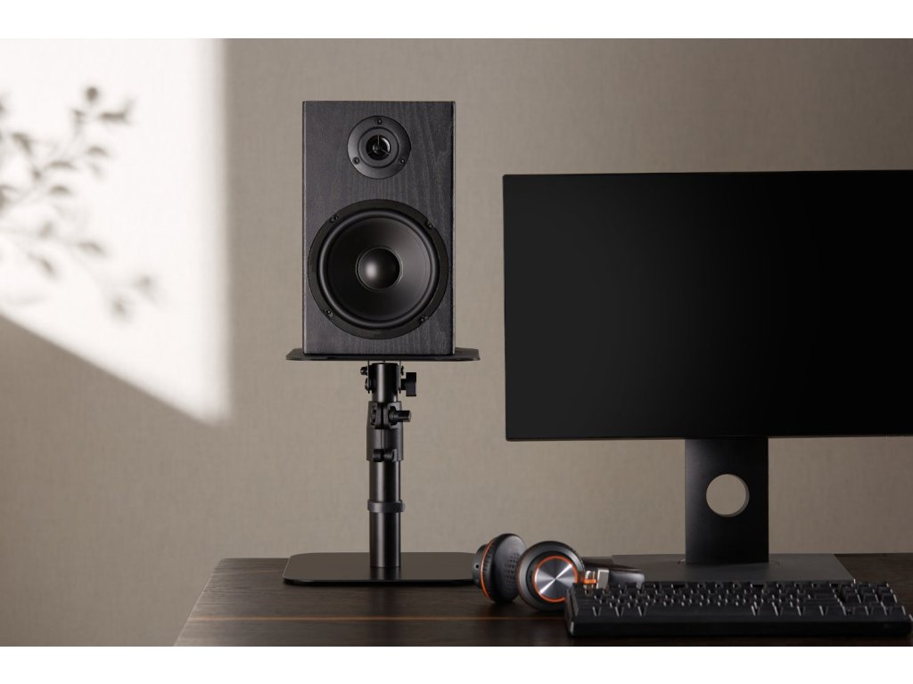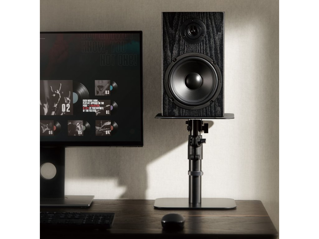 Prawidłowe ustawienie głośników jest kluczowe dla osiągnięcia optymalnej jakości dźwięku w Twoim studiu i domowym pomieszczeniu odsłuchowym. Umieszczenie monitorów bezpośrednio na biurku może powodować niepożądane rezonanse, które negatywnie wpływają na czystość dźwięku. Stojaki MSK6 pozwolą Ci łatwo ustawić monitory na biurku i precyzyjnie dostroić ich wysokość i nachylenie dla idealnej pozycji odsłuchowej.