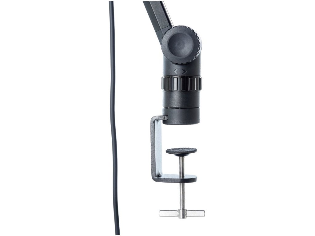 Solidny statyw mikrofonowy odpowiedni do domowych studiów nagraniowych, broadcastu, podcastów lub studenckich stacji radiowych. Statyw można umieścić za pomocą śruby gwintowanej na blacie roboczym lub biurku o grubości do 60 mm. Statyw jest wykonany z wysokiej jakości aluminium, a jego regulowane ramię posiada również zaciski do doskonałego zarządzania kablami. W zestawie znajduje się redukcja gwintowa i kabel mikrofonowy o długości 4 m.