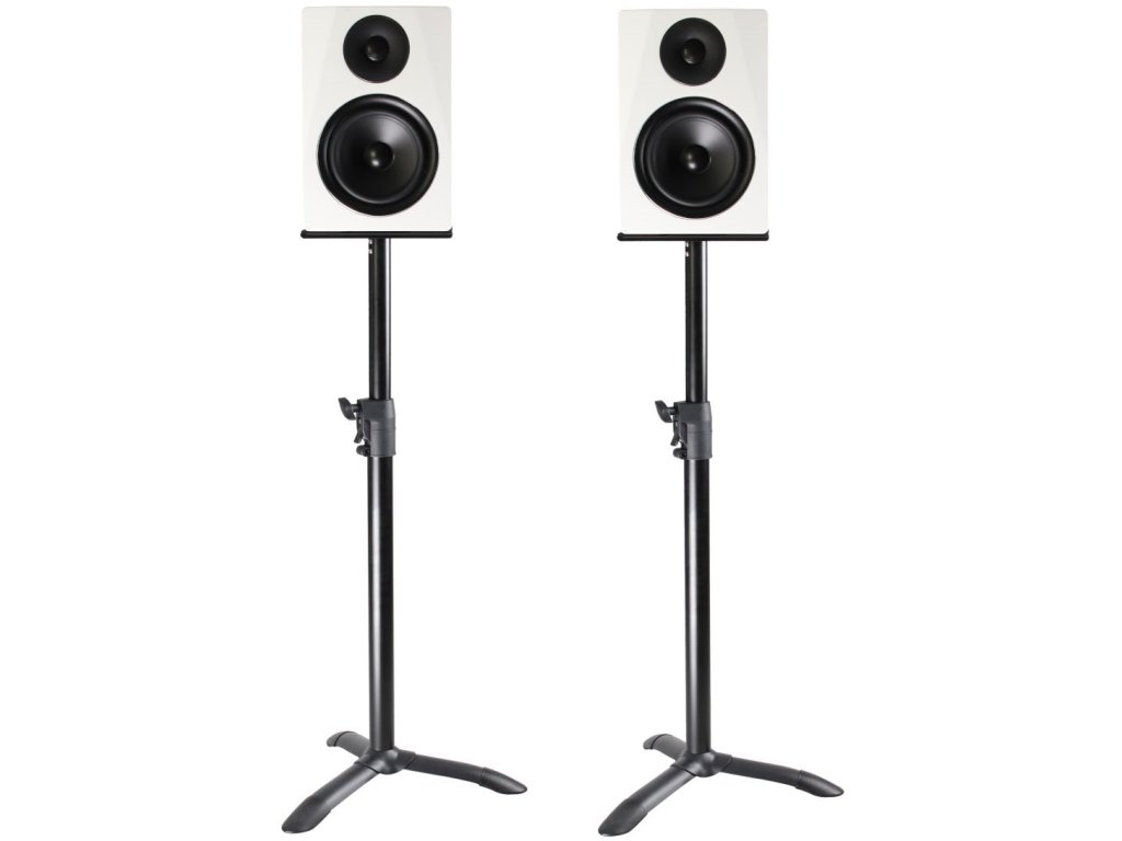 Solidny, regulowany zestaw stojaków odpowiedni do monitorów studyjnych i głośników. Wykonany z wytrzymałej stali i wyposażony w statyw zapewniający maksymalną stabilność i bezpieczeństwo. Do stojaka można przymocować większość monitorów dostępnych na rynku, dzięki czemu nadaje się do studiów nagraniowych, ale z pewnością docenisz go również w kinie domowym, sali prób lub biurze.
