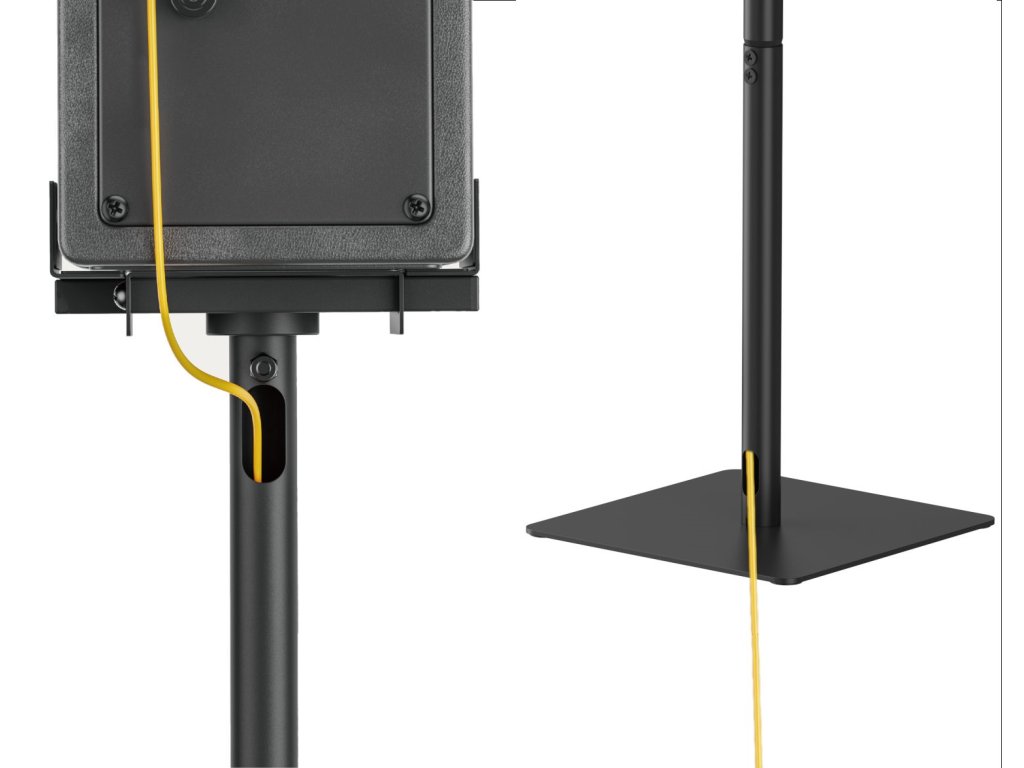 Platformę można łatwo obracać o 360° i pochylać o 10° w pionie i poziomie, co pozwoli Ci osiągnąć idealny punkt odsłuchu (optymalne miejsce odsłuchu). Zintegrowane puste przestrzenie w tubach statywu i podstawie służą do dyskretnego prowadzenia kabli, utrzymując porządek w Twoim miejscu pracy.