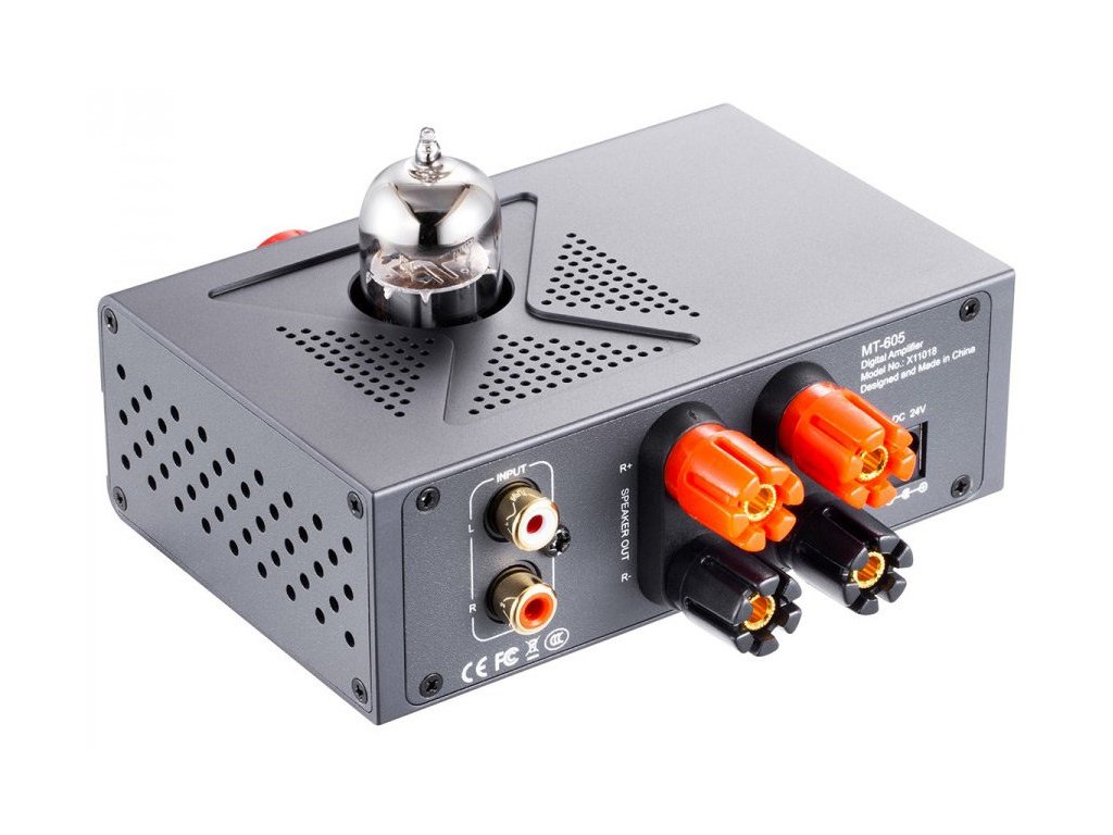 XDuoo ostatnio zaczyna produkować, oprócz wzmacniaczy słuchawkowych, również wydajne wzmacniacze przeznaczone do użytku z pasywnymi głośnikami półkowymi. Kolejnym modelem w tej kategorii jest XDuoo MT-605. Nowością w nim jest zastosowanie hybrydowego obwodu, który łączy zalety wzmacniacza lampowego i tranzystorowego. Samo wzmocnienie zapewnia układ TI TPA3116, dzięki któremu urządzenie osiąga moc do 50W na kanał (krótkotrwale, długotrwale jest w stanie osiągnąć 30W mocy wyjściowej). W obwód wkomponowana jest lampa elektronowa 12AU7, która nie wzmacnia sygnału, a jedynie modyfikuje go do klasycznego „lampowego” brzmienia. Dzięki niemu finalny dźwięk ma przyjemniejszy bas, bardziej miękki dźwięk i jest ogólnie przyjemniejszy podczas dłuższego słuchania. Nowo XDuoo używa uznawanych przez audiofilów, japońskich kondensatorów Rubycon i Nichicon, dzięki którym urządzenie ma bardzo czyste i precyzyjne wysokie częstotliwości. Obudowa urządzenia jest taka sama jak w poprzednich modelach, czyli połączenie aluminium i wysokiej jakości tworzywa sztucznego.