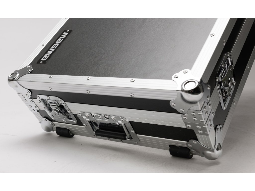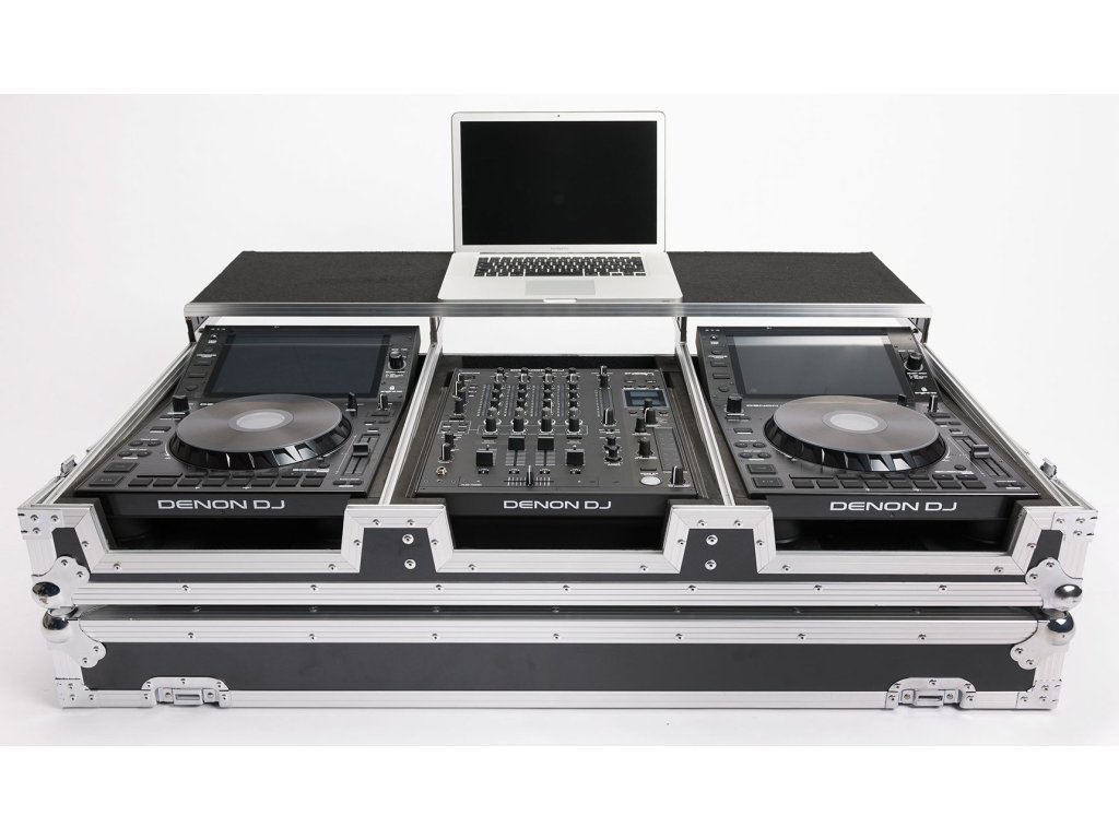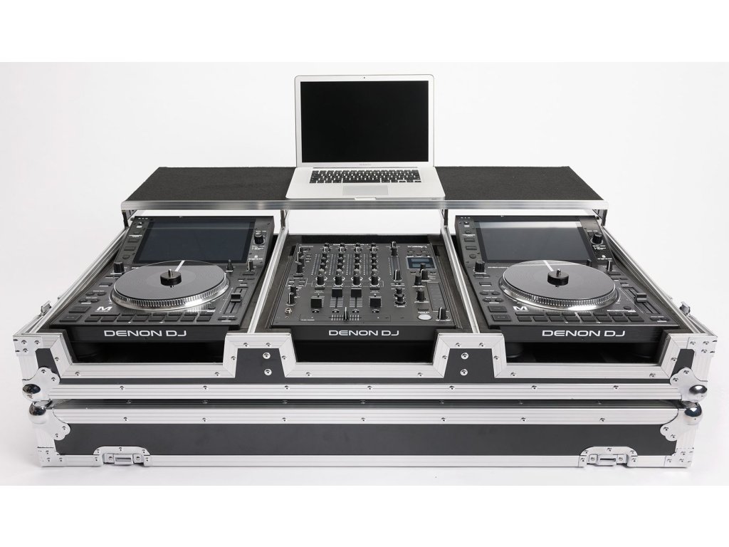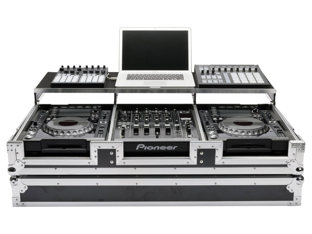 Jeden rozmiar dla wszystkich! Zaprojektowany na miarę dla mobilnych DJ-ów, aby pomieścić dwa CDJ-e lub odtwarzacze multimedialne i jeden czterokanałowy klubowy mikser. Każda przegroda na odtwarzacz CD i mikser jest wyposażona w dodatkowe listwy piankowe, które zapewniają uniwersalne dopasowanie wszystkich modeli Pioneer DJ, Denon, Allen & Heath, Denon, Rane, Reloop itp. Dzięki zdejmowanym osłonom panelu przedniego, użytecznym portom dostępu do kabli i wyjątkowo szerokiej platformie na laptopa, powierzchnia robocza jest gotowa do akcji w mgnieniu oka, ponieważ nie trzeba już wyjmować sprzętu z walizki. Ta walizka, wykonana z laminowanej winylem sklejki o grubości 9 mm, solidnych profili aluminiowych, wytrzymałych zatrzasków motylkowych i gładko jeżdżących kółek, zapewnia doskonałą ochronę podczas mobilnego użytkowania w podróży.