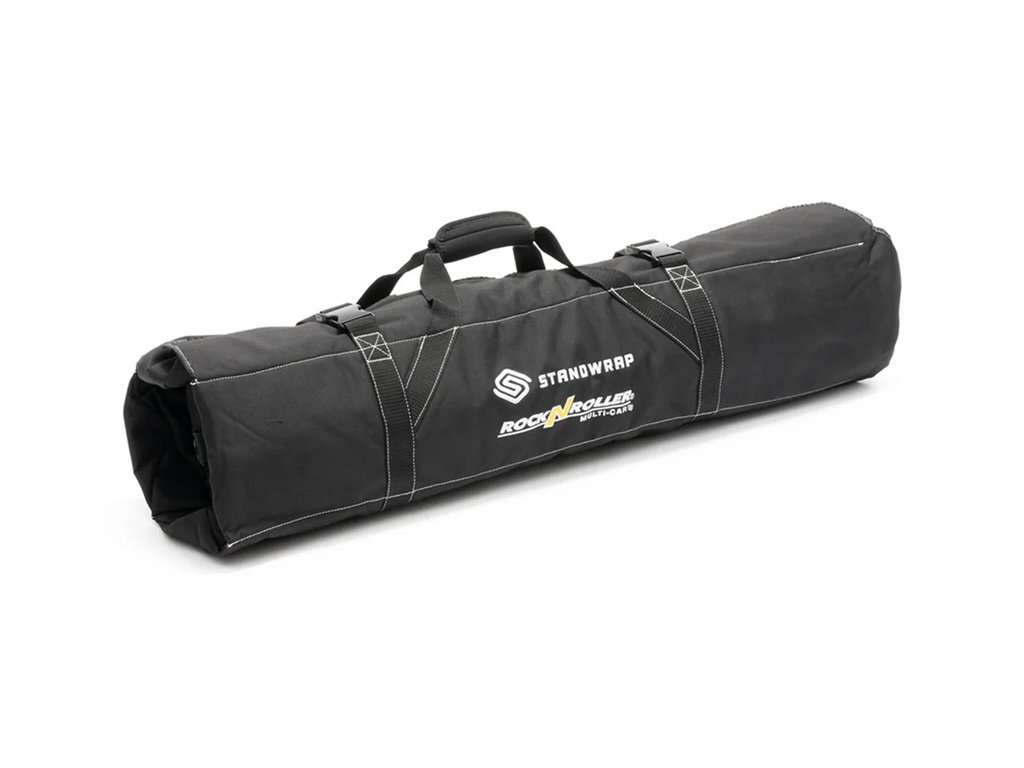 MultiCart Standwrap 4-Pocket Roll Up Accessory Bag RSA-SWSM (Small) to kompaktowa torba zaprojektowana do wygodnego transportu długich przedmiotów, takich jak statywy mikrofonowe, hardware perkusyjny, statywy kolumn głośnikowych lub sprzęt dla dźwiękowców i oświetleniowców. Dzięki rolowanej konstrukcji umożliwia szybki dostęp do potrzebnych akcesoriów bez konieczności wyjmowania całej zawartości. Cztery przestronne, trójkątne kieszenie zapewniają uporządkowane przechowywanie sprzętu, eliminując w ten sposób jego wzajemne obcieranie i zacinanie się podczas manipulacji. Dodatkowo, transportowane statywy są zabezpieczone przed wypadnięciem za pomocą masywnych, tekstylnych uchwytów, która je mocno mocują i zapewniają bezpieczny transport podczas zwijania torby.