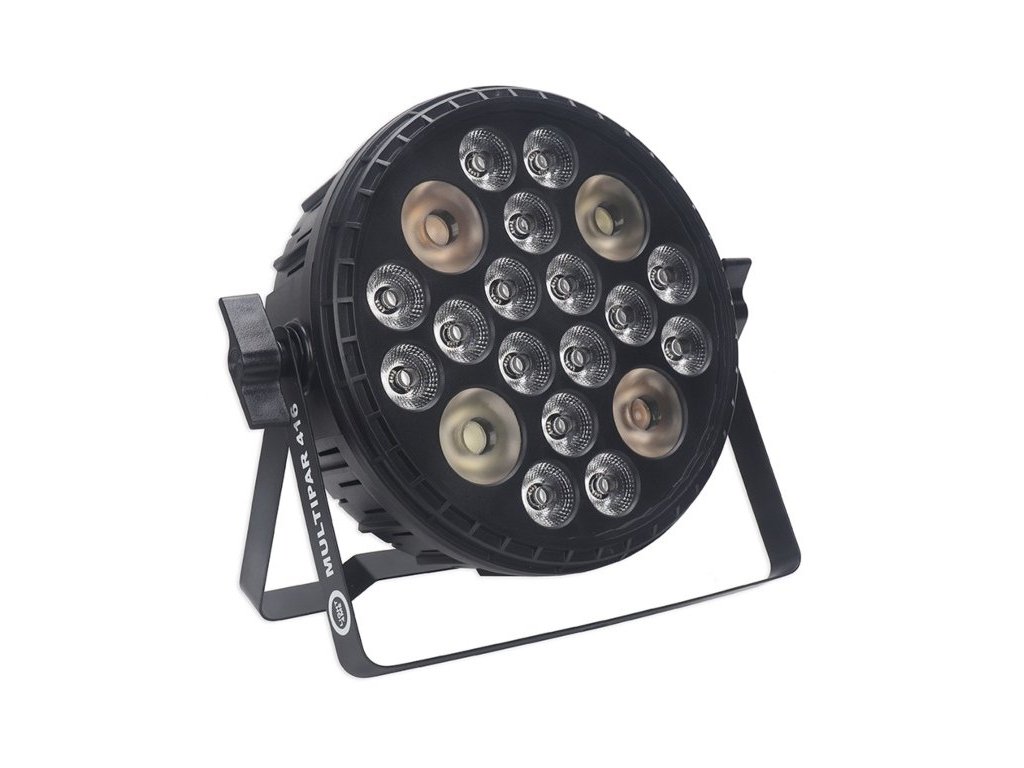 LIGHT4ME MULTIPAR 416 RGB-UV+WW/CW to wysokiej jakości urządzenie oświetleniowe ze zdalnym sterowaniem bezprzewodowym na podczerwień (IR), które idealnie sprawdzi się dla każdego, kto potrzebuje oświetlenia scenicznego. Ten reflektor sceniczny LED oferuje wyjątkową jakość światła dzięki szesnastu wydajnym diodom LED w palecie kolorów RGB-UV o mocy 12 W każda oraz czterem wydajnym diodom LED pracującym w barwach WW/CW (ciepła biel, zimna biel) o mocy 15 W każda. Dzięki liniowemu ściemniaczowi o pełnym zakresie użytkownicy mogą z łatwością regulować jasność światła w zależności od potrzeb. Reflektor jest wyposażony w stroboskop z regulowaną prędkością.