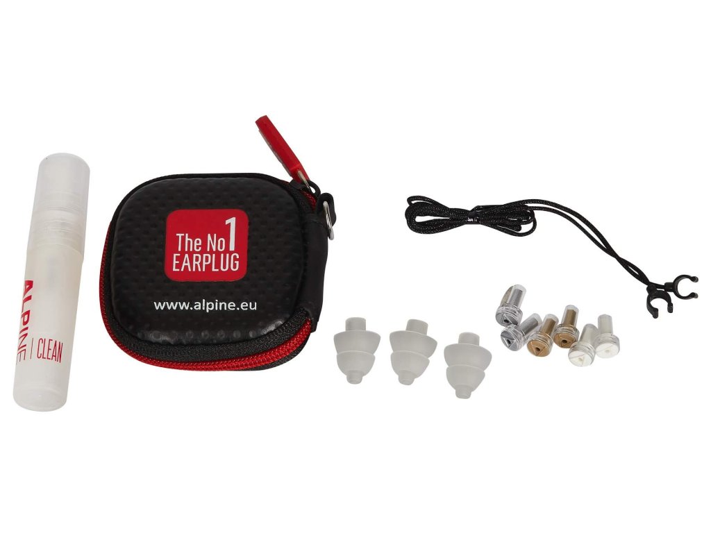 W zestawie znajdują się trzy zatyczki (w tym jedna zapasowa), trzy wymienne filtry, smyczka Alpine ułatwiająca przenoszenie, dzięki której na pewno nie zgubisz zatyczek, spray czyszczący Alpine oraz luksusowe etui.