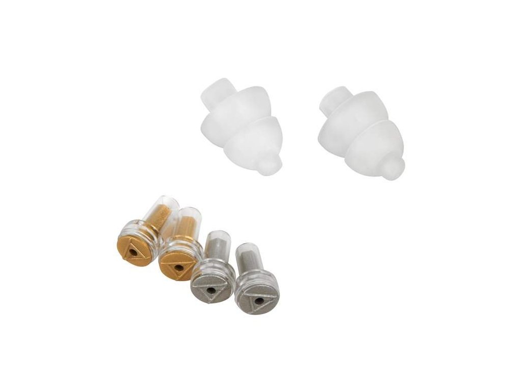 W zestawie znajdują się dwie pary stoperów, dwa wymienne filtry i luksusowe etui.