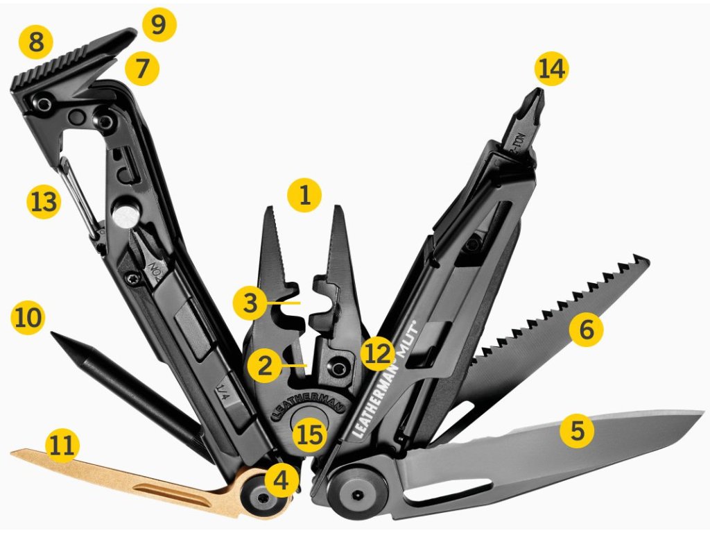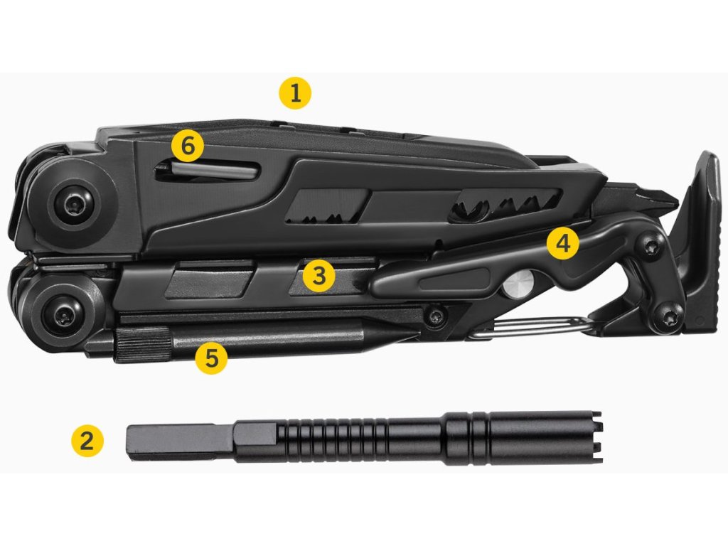 Multitool MUT EOD dysponuje narzędziami od szczypiec zaciskowych, solidnego noża polowego i obcinaków drutu bezpiecznikowego po skrobak do karbonu, narzędzie do usuwania zerwanej śruby i wymienny dziurkacz do C4 – ma wszystko, czego potrzebujesz, w łatwo dostępnej konfiguracji do Twojej specjalistycznej pracy. Wykonaj swoją misję, zadbaj o swój sprzęt polowy i odciąż swój ekwipunek.