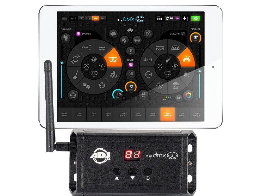 MyDMX GO os ADJ to nowy, rewolucyjny system sterowania oświetleniem, który jest niezwykle wydajny i niewiarygodnie łatwy w obsłudze. Łączy w sobie unikalne, intuicyjne sterowanie oparte na aplikacji z kompaktowym interfejsem, który bezprzewodowo łączy się z iPadem lub tabletem z systemem Android, i oferuje standardowe 3-pinowe wyjście XLR do podłączenia do systemu oświetlenia.