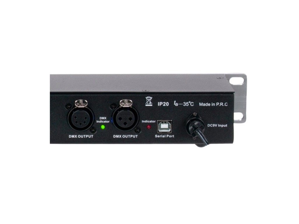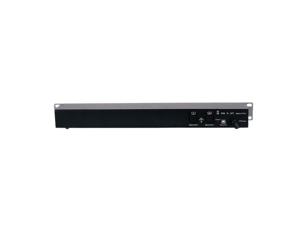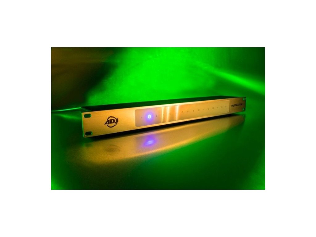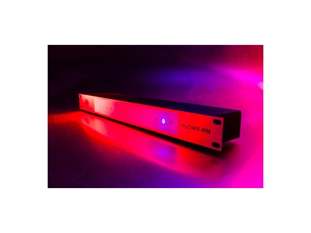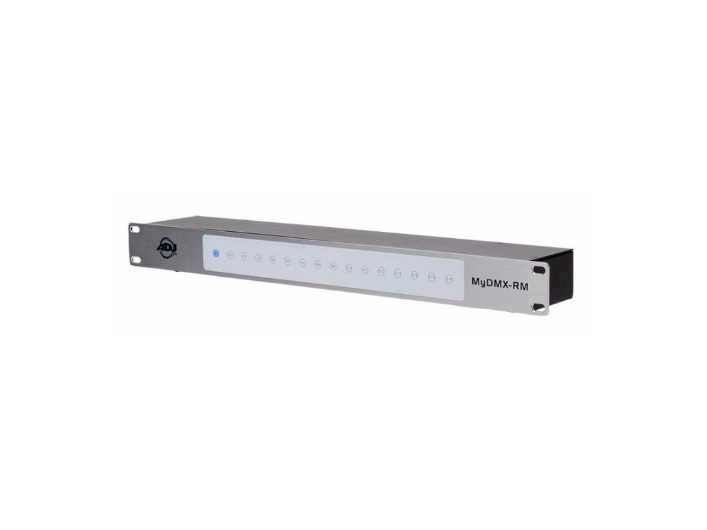 American DJ myDMX-RM. Konwerter DMX z pamięcią do przechowywania 16 trybów oświetlenia. Współpracuje z komputerem lub jako samodzielne urządzenie. Umożliwia łatwą konfigurację i zmianę scen świetlnych bez użycia komputera PC. DMX jest dostarczany z oprogramowaniem sterującym myDMX 3.0 DMX dla komputerów Mac lub PC. Konwerter można umieścić w 19'' racku.